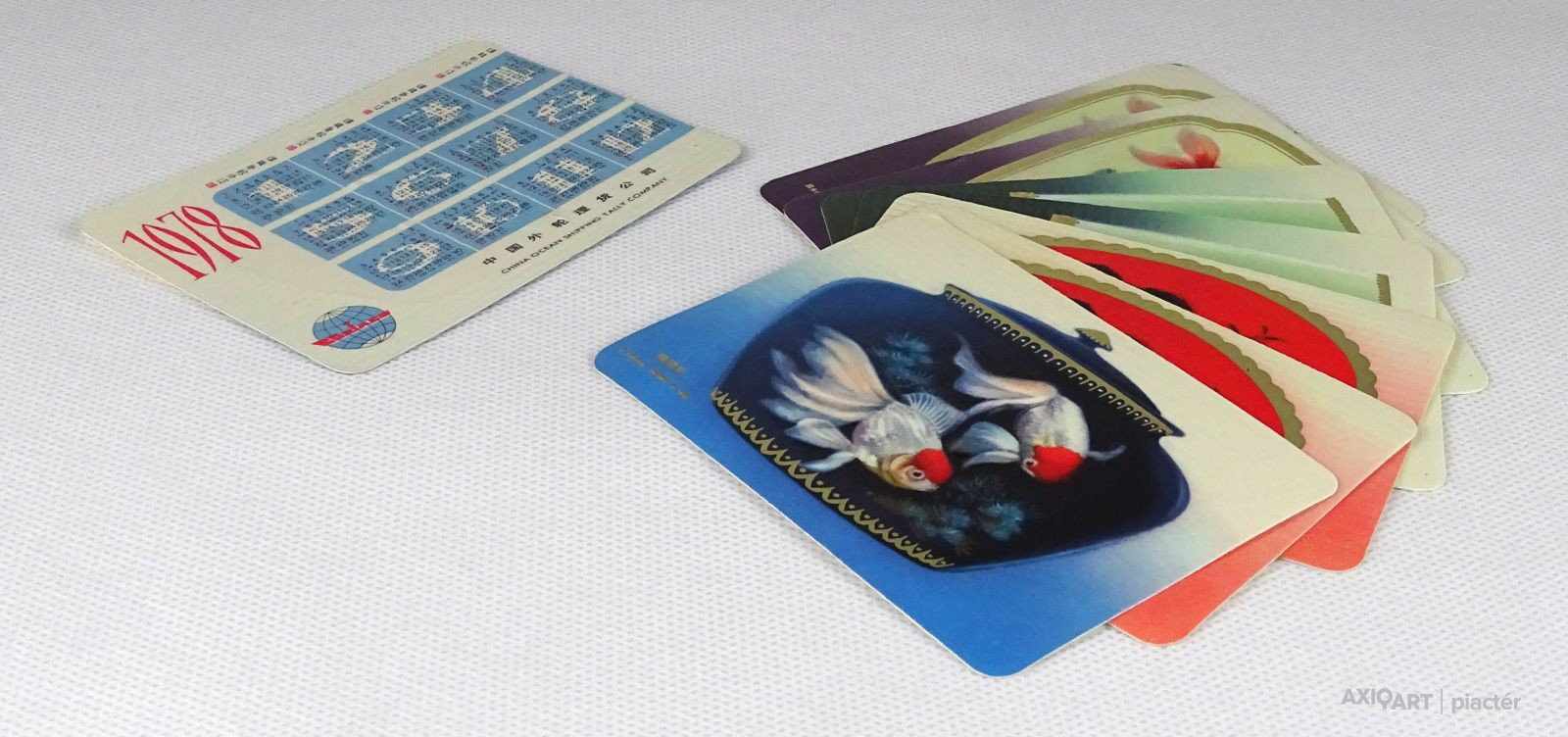 Gyönyörű különleges kínai aranyhalas kártyanaptár 1978 8 darab