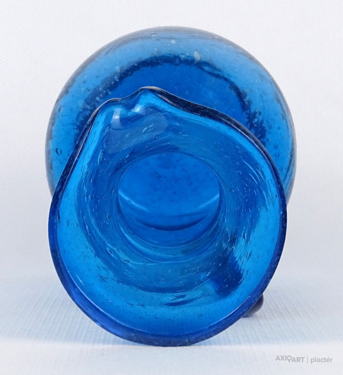 Gyönyörű művészi fújt kék üveg kiöntő váza 19.5 cm