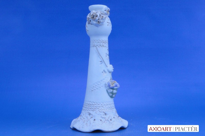 [0C025/BX-9] 25% ÁRENGEDMÉNY MINDEN TERMÉKÜNKRE Dec. 14-ig Hibátlan Győrbíró Enikő kerámia kislány virágkosárral. Alján masszába karcolt GYE jelzés. Mellette papír vignetta, rajta felirat: GYŐRÍBÓ ENIKŐ Magasság: 18.5 cm Súly: 0.28 kg ÉLETRAJZ   Győrbíró Enikő keramikus 1932-1999-ig élt. Életének utolsó 25 évében alkotott figurális kerámiákat, szobrokat, tálakat, faliképeket. Szobrain az arc, kéz, láb mázmentesen, terrakottán látható, így kifejezőbb a házaspárok, a szülő és gyermek egymáshoz való kapcsolata. A szobrok érzelmeket fejeznek ki. Ezért gyűjtői hagyatékát gondozó férjjel, Bogó Ferenccel a mai napig is kapcsolatot tartanak. A hagyaték szobraiból évente több kiállítás látható az orszég városaiban.