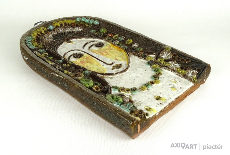 Hibátlan állapotú, égetett boltíves samott iparművészeti falikerámia, falidísz. Rajta női portré.
