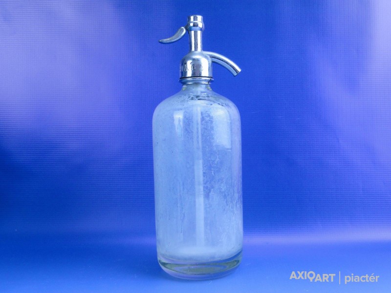 Hibátlan állapotú, krómozott fémfejes szódásüveg szikvizes üveg.