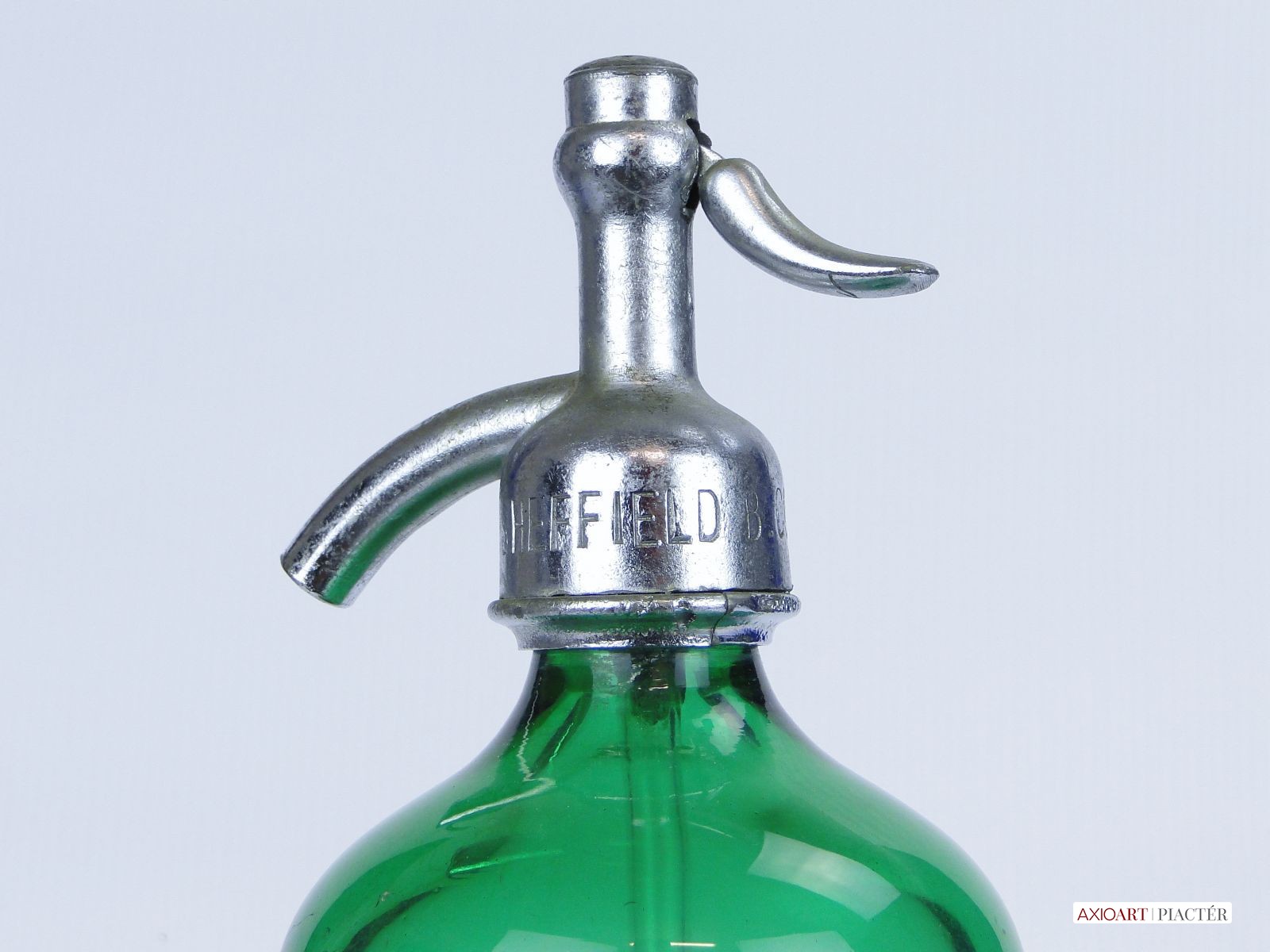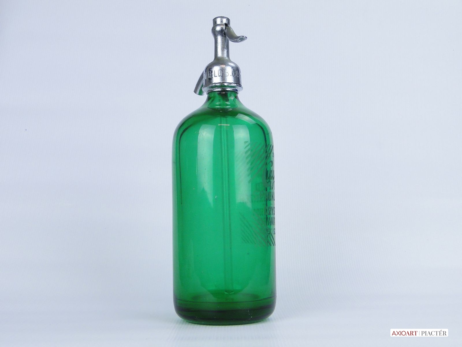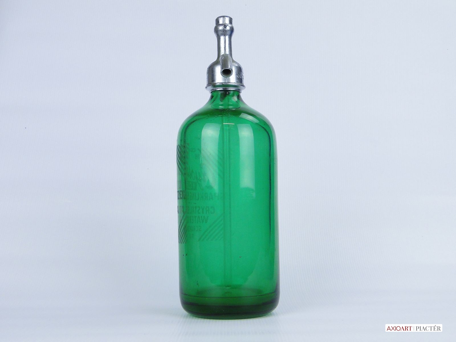 [0D890/UZ-N] Antik méregzöld, rendkívül ritka színű, gyűjteménybe való szódásüveg. Hibátlan állapotú, fémfejes. Palackon homokfúvott felirat: CONT. 28 OZ. CRYSTAL CLUB SPARKLING SELTZER CRYSTAL SODA WATER Co. SCRANTON PA. Talpán felirat: MAJESTIO MADE IN CZECHO-SLOVAKIA A fejen felirat: SHEFFIELD B. Co. PHILA. Magasság: 28 cm Szélesség: 9 cm Súly: 1.454 kg