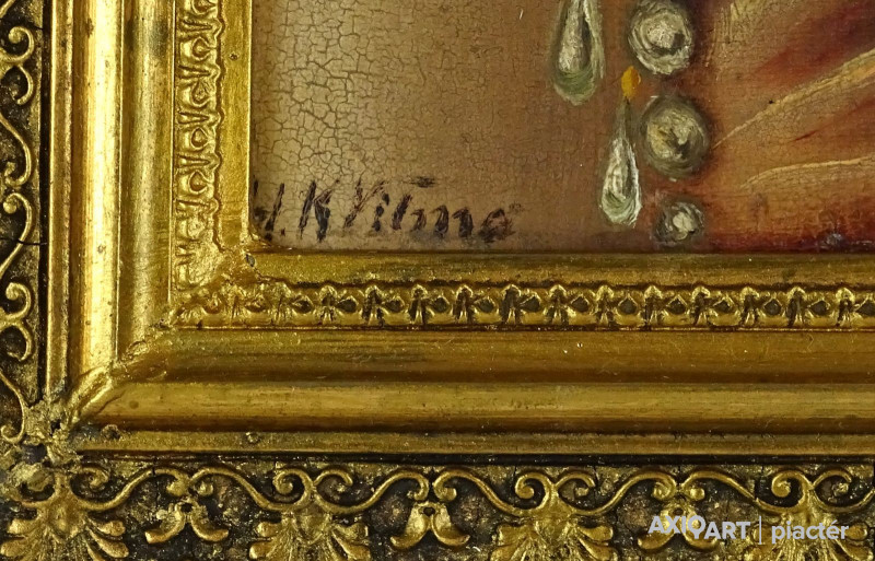 A festmény hátoldalán a Képcsarnokvállalat címkéje található.