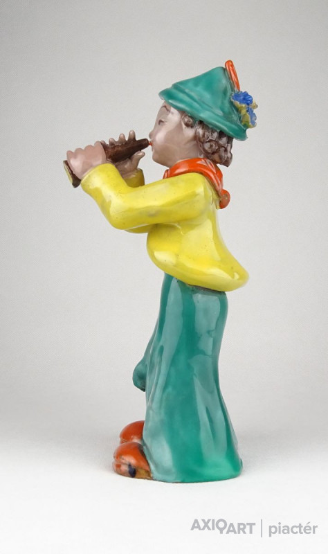 Hibátlan állapotú, antik mázas kerámia, furulyázó cserkész figura, tollas kalapban. A kerámia profi restaurátor által javított.