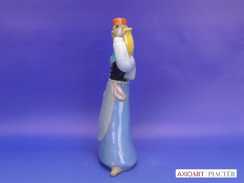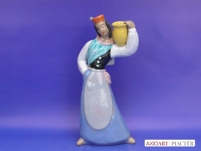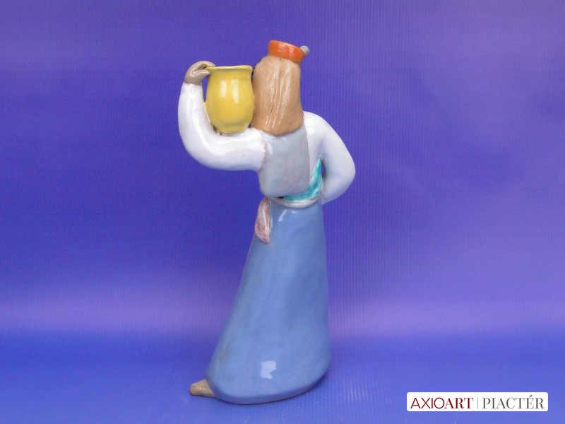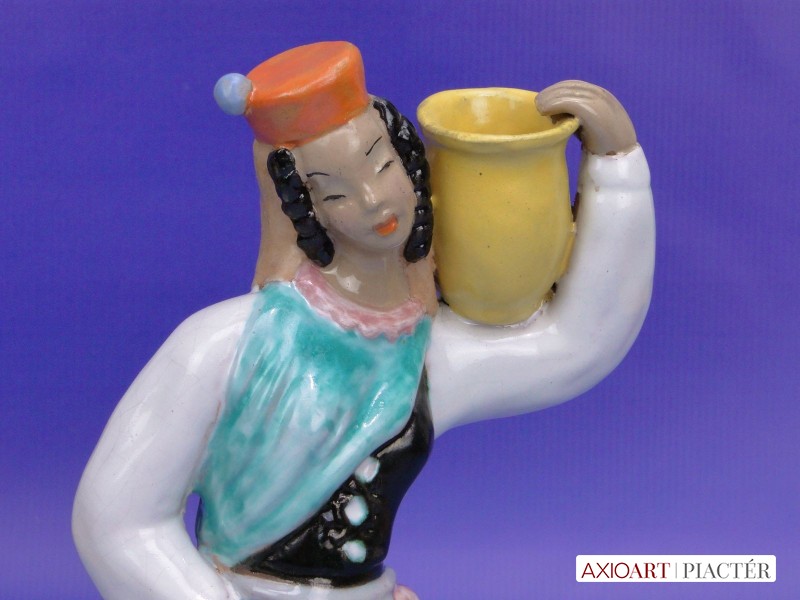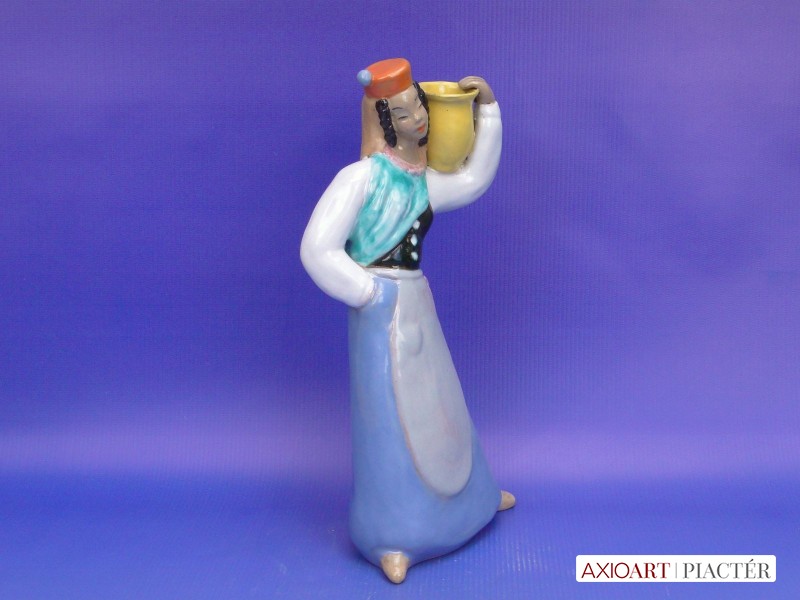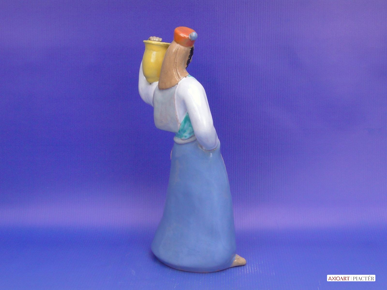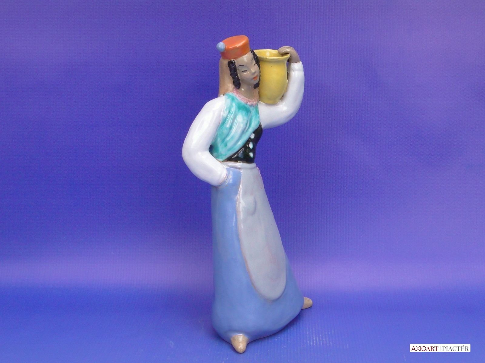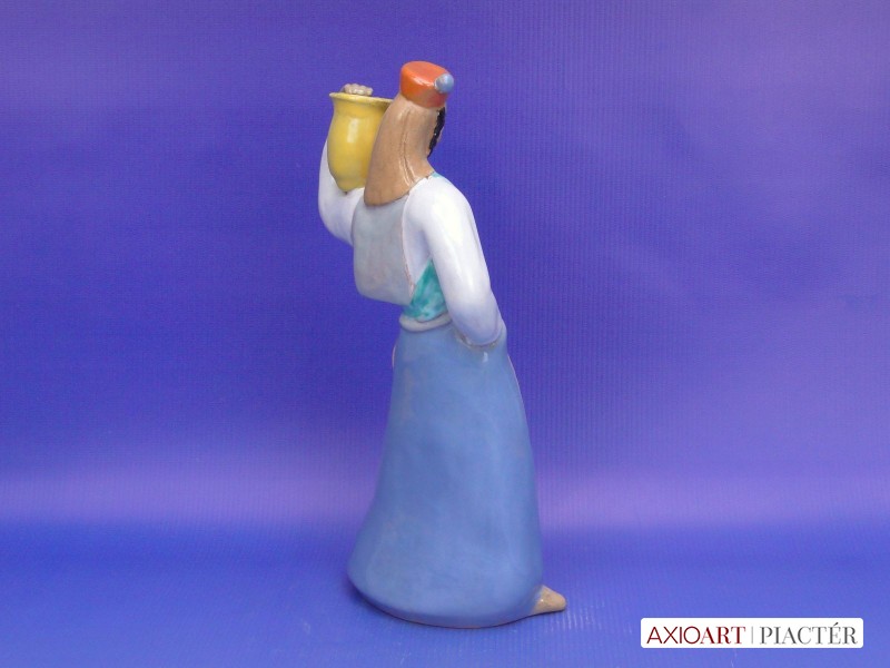 Hibátlan állapotú, antik mázas kerámia, nő korsóval, keleti témájú ábrázolás.
