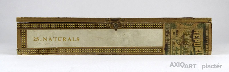 Nyitható fedelű, feliratos szivaros fa doboz. Rajta 1912-es zárjegy, lásd fotó. Gyönyörű díszes réz kapoccsal rendelkezik.