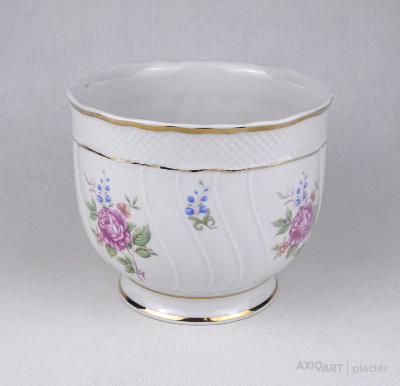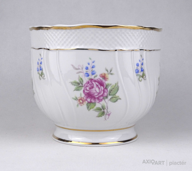 Hajnalka mintás, aranyozott, fehér Hollóházi porcelán kaspó 11.5 cm