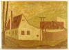 [1Y029/Z018] Olaj farost festmény, üveglap mögött, hibátlan képcsarnokos keretben. Hátoldalán Képcsarnok Vállalat papír címkéje: A művész neve: SCHÉNER MIHÁLY A kép címe: TÁJ Magasság: 66.5 cm Szélesség: 86 cm Súly: 6.54 kg Schéner Mihály festő, grafikus, szobrász, keramikus, bábtervező Medgyesegyháza, 1923-01-9 Elhalálozott: Budapest, 2009. május 11. Honlap: http://www.kormendigaleria.hu/kiadvany.html 1942-1947: Magyar Képzőművészeti Főiskola, tanára: Rudnay Gyula. 1978: Munkácsy-díj; 1984: érdemes művész; 1989: kiváló művész; 1995: Kossuth-díj. 1992-től a Magyar Művészeti Akadémia, 1993-tól a Széchenyi Irodalmi és Művészeti Akadémia tagja. 1956-ig tanított. 1982: Nagyatádi Faszobrász Alkotótelep, 1985: Nemzetközi Acélszobrász Alkotótelep, Dunaújváros. A stílusában felismerhető, mégis sokféle műtárgyat létrehozó ~ gazdag, állandóan alakuló életműve a folyton változó világban helyét kereső, az alkotói szabadságot megvalósító XX. századi képzőművész példázata lehetne. Magát expresszív-szürrealista alkotónak nevezi. Egyaránt dolgozik festékkel, textillel, fával, fémmel. Rajzol, szerkeszt, farag, épít, gyúr, varr és ragaszt, felhasználja a mézesbábok öntőformáit. Festő, rajzoló, textilszobor- és bábkészítő, fazekas, asztalos, esztergályos. Háromlépcsős folyamatban gondolkozik: rajzban tervez, majd fest, szobrot készít, “formába önt”, mindig a végső plasztikai megoldást keresi. Ami állandó és mégis játékosan változékony megjelenésű Schéner művészetében, az a gyermekkori emlékek által meghatározott népi mesterségek iránti tiszteletet kifejező motívumkincs, a tárgyi folklór formakészlete, amely már-már kézjegyként ismétlődik munkáin. Mitologikussá nőtt képzelete új lényeket teremt, pl: a Pigulát, amely disznótestű, emberfejű teremtmény. Schéner festményein a szürrealista motívumokat konstruktív szerkezetbe rendezi, a geometriát és az organikus természeti motívumokat egyaránt beépíti műveibe. A népi, népművészeti formakincsből merített lovas huszárok, betyárok, szegénylegények cifra szűr mentéje, piros csákója, fekete csizmája, az önálló életet élő zsinórdíszek és mézeskalács bábok, a kiskocsik a gyermekkori vásárok, búcsúk színes forgatagába vezet. A primér motívumokat aztán felváltják a vastagon felhordott felületbe karcolt jelek, vonalhálózatok, amelyek a játszó gyermek homokba rajzolt ábráit, a pásztorember fába vésett üzeneteit, az ősember barlang falába rótt mágikus jeleneteit idézik meg. A művész pillanatnyi érdeklődésének megfelelően a színek búvópatakként tűnnek el és jelennek meg ismét. A 60-as években leginkább a formákkal való játék érdekelte, a festmények felülete egyre gazdagodott: a táblaképek felületén applikációk jelentek meg, vagy lemállasztott rétegek hagyták maguk után hiányukat, motívumok nélküli ősformák, archetipikus képzetek bukkantak fel művészetében. A véletlenszerűnek látszó rétegekkel való játék azonban tudatos komponálás eredménye, amely később nyilvánvaló ritmusnak és formai szerkesztettségnek adja át a helyét, mint a Törvénytáblák c. sorozaton. A különböző művészi kifejezési formák egymásra termékenyítő hatással vannak, át- meg áthatják egymást. Textilszobrai, amelyekkel új műfajt teremtett, ugyanazzal az automatikus, expresszív-szürrealista módszerrel készülnek, mint festményei. A hagyományosan a népművészetben alkalmazott anyag, a filc lehetőséget ad a népi formakincs felelevenítésére, amely azonban a művész különös szürrealista átiratában jelenik meg. A szívekkel kivarrt, zsinórdíszes Posztókotlós c. művén mézesbábok lógnak, hátán huszárok lovagolnak. Egész sor textilből készült kéz-plasztikát alkot, amelyeket az ujjakra rávarrt díszekkel öltöztet, személyesít meg. A színes-különös világból aztán ~ újra puritán képi és formai rendbe juttatja el a nézőt, majd nemsokára tépett, gyűrt, vágott, csorgatott, repedezni hagyott szenvedélyesen vonagló képi felületeket hagy hátra. Schéner készített apró gyermekjátékokat, térstruktúra-tereket, mászókákat is. A magyar népi formák mellett szürreális játékaiban gyakran alkalmaz görög mitológiai alakokat, “elkentaurosodott” lovakat, Gorgó-fejeket, sellőket, hárpiákat, Pán-ábrázolásokat. Schéner nemcsak saját művészetéről publikál, hanem művésztársairól is számos írása jelenik meg, elsősorban az Új Auróra c. folyóiratban, amelynek egy ideig főmunkatársa volt. Irodalom kiállítása, Magyar Építőművészet, 1962/4. Húsz év után, Művészet, 1965/4. BOZÓKY M.: ~, Tiszatáj, 1968/5. PERNECZKY G.: Nincs uborkaszezon, Élet és Irodalom, 1969. augusztus 8. BARÁNSZKY-JÓB L.: ~, Művészet, 1969/9. LÁSZLÓ GY.: ~ kaposvári kiállítása, Jelenkor, 1969/4. MAJOR M.: Pásztorok, betyárok, huszárok - kezek, Tükör, 1970. szeptember 15. FRANK J.: Bemutatjuk ~t, Élet és Irodalom, 1972. május 6. ról kiállítása ürügyén, Képzőművészeti Almanach, Budapest, 1972 Sötétkék kokasok, Élet és Irodalom, 1973. szeptember 9. MAJOR M.: ~ játékai, Élet és Irodalom, 1974. július 27. BARTA J.: Egy különös művész, Alföld, 1974/6. VADAS J.: Szárnykészítők, Élet és Irodalom, 1975. október 4. JUHÁSZ F.: A halál ellen játszani, Élet és Irodalom, 1975. május 17. PAP G.: Kincsek és műkincsek, Művészet, 1975/6. P. SZŰCS J.: Az utak kettéválnak, Művészet, 1978/3. Békési művészet, Művészet, 1978/7. SZAMOSI F.: ~ [kismonográfia], Budapest, 1978 VADAS J.: Játék a játékkal, Élet és Irodalom, 1979. augusztus 18. NÉMETH L.: ~ műveiről, Művészet, 1979/4. MIKLÓS P.: Mit akar ez a múzeum?, Művésze