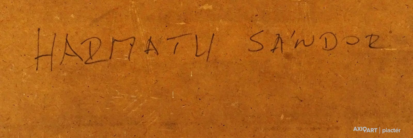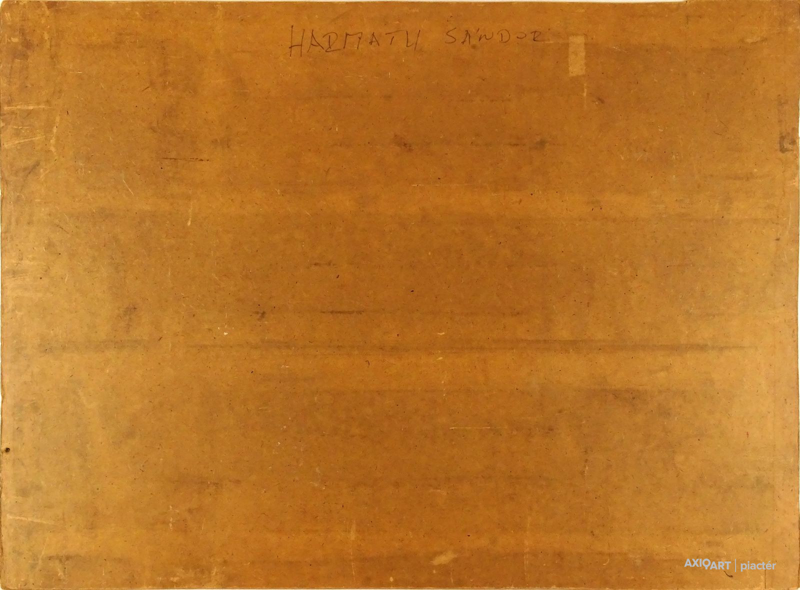 [1C157/Z070] Vegyes technika farost festmény, keret nélkül. Jelezve jobbra lent: HARMATH Balra lent évszám: 1972 Hátoldalán jelzés: HARMATH SÁNDOR Magasság: 70 cm Szélesség: 95 cm Súly: 3.325 kg