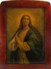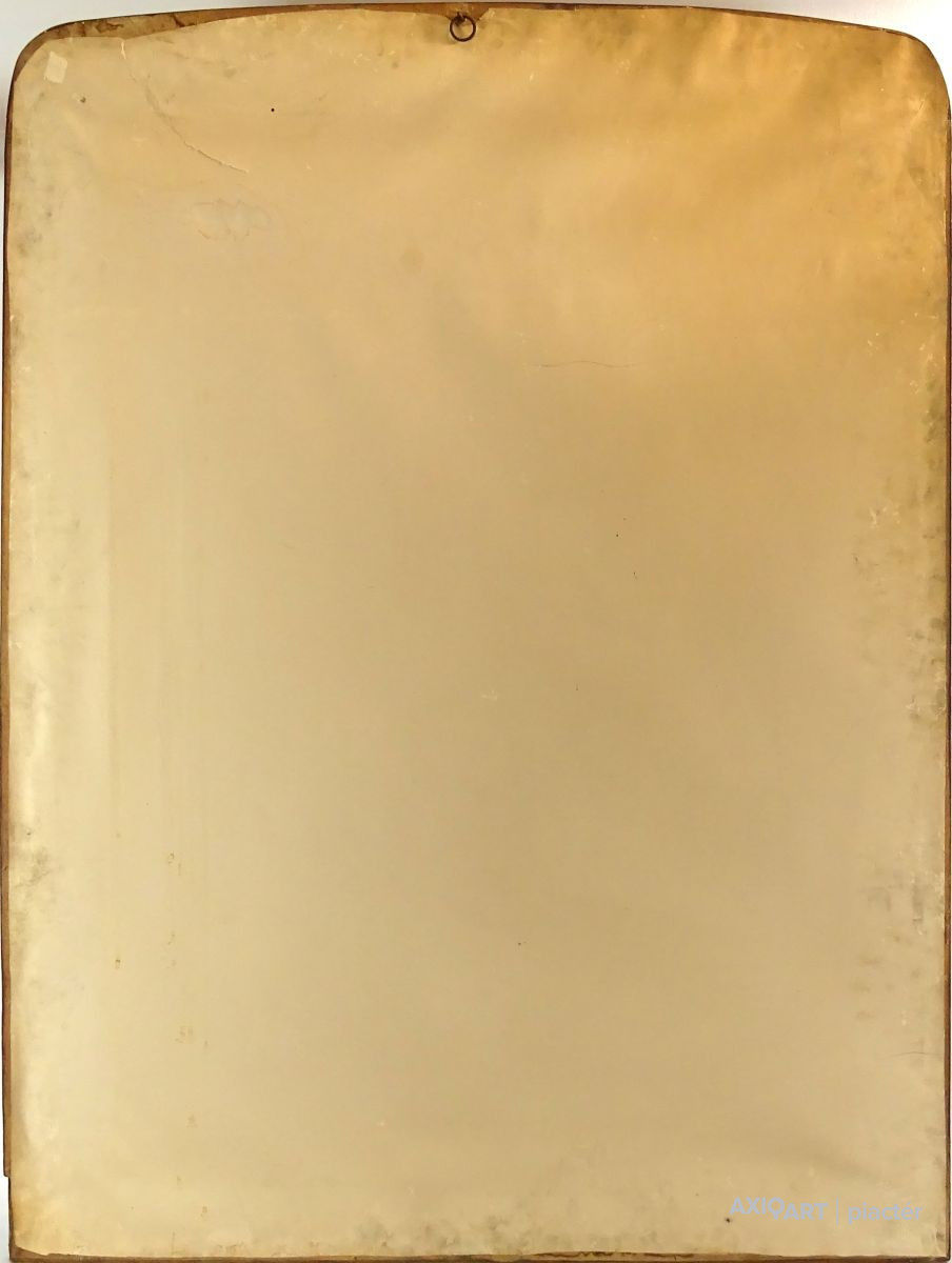 [1F861/006] Antik nagy méretű színes olajnyomat, szentkép. Széles mahagóni keretben, falra akasztási lehetőséggel. Jelzés balra lent: PAOLO Magasság: 120.3 cm Szélesség: 90.5 cm Súly: 6.3 kg