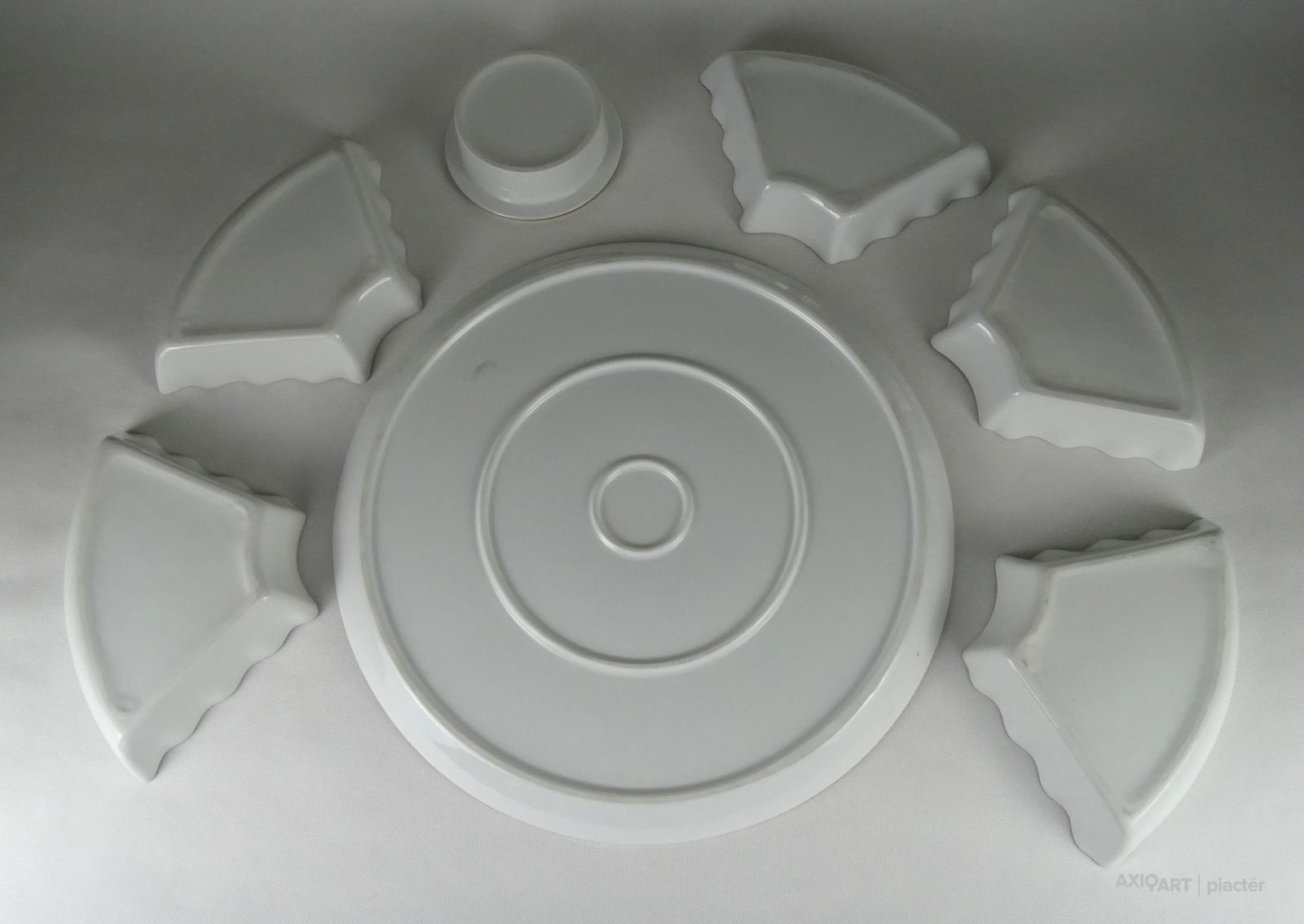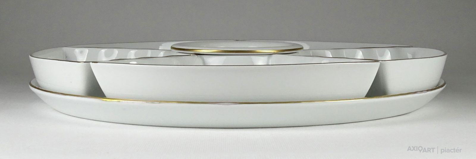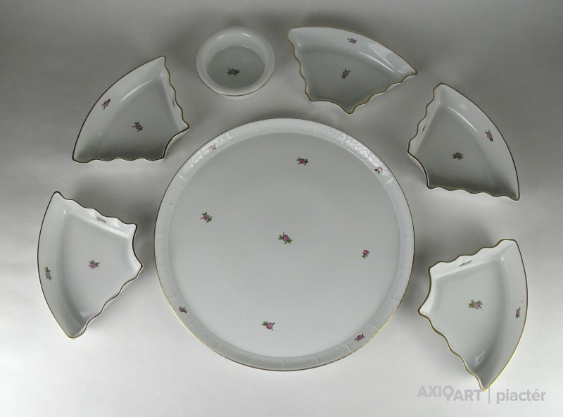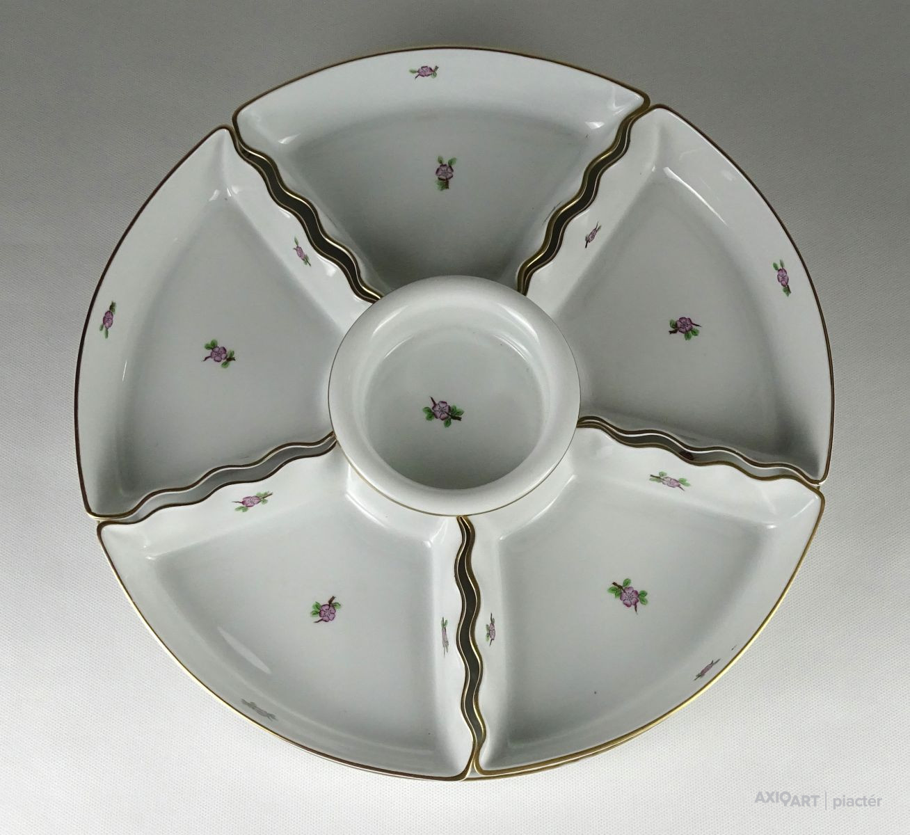 Hibátlan állapotú, kézi festésű Eton mintás Herendi porcelán kínáló tál, kivehető nassos tálkákkal.