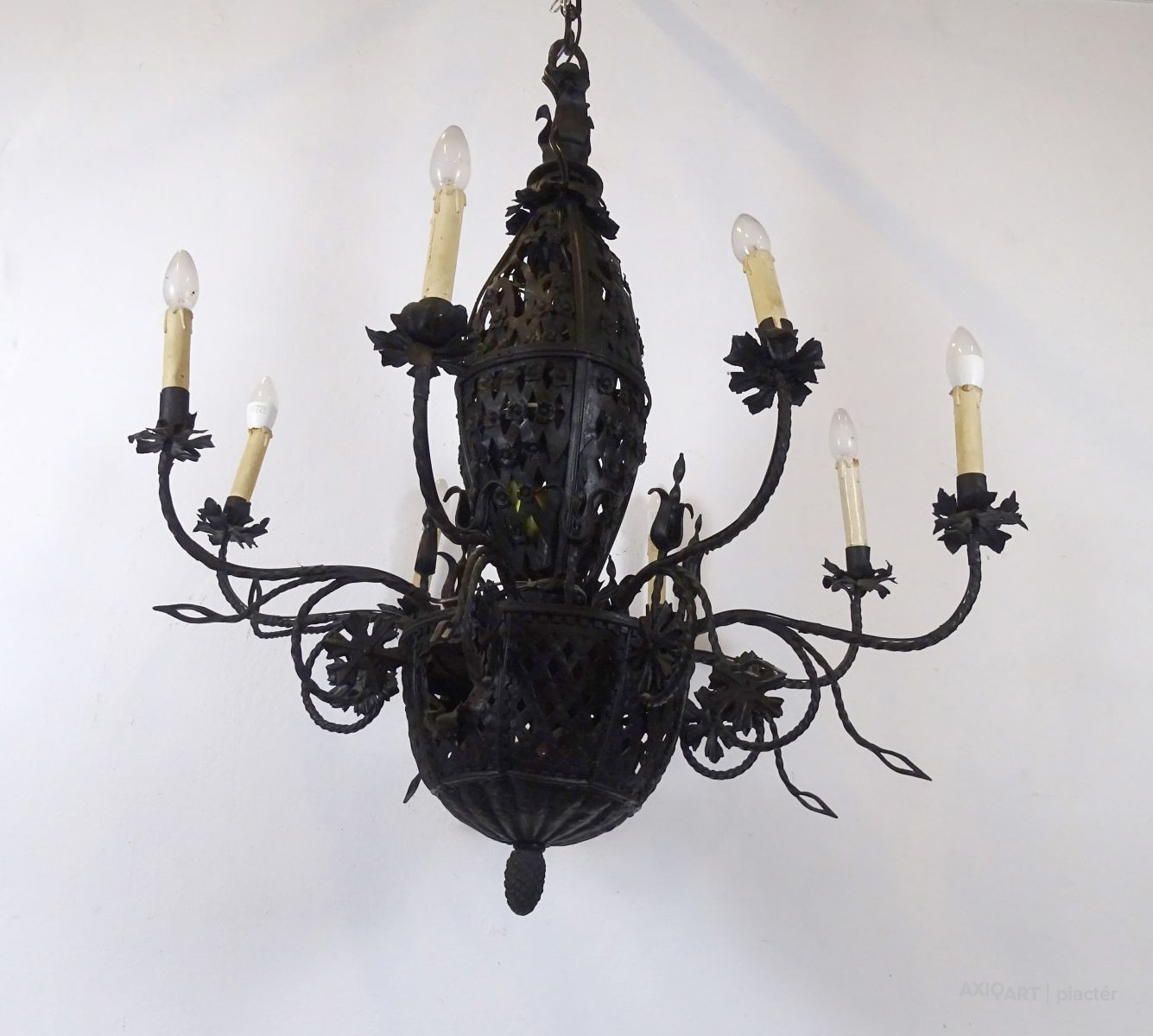 Hatalmas gyönyörű nyolc karú kovácsoltvas csillár