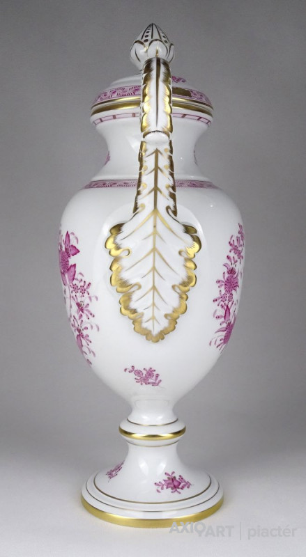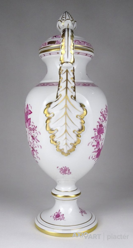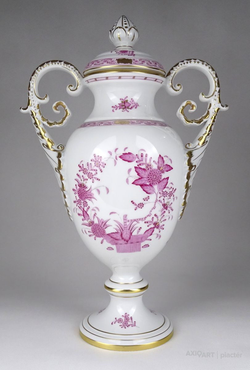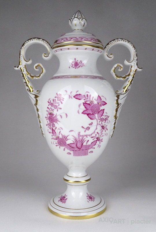 Hibátlan állapotú, dúsan aranyozott rózsaszín indiai kosár mintás nagy méretű Herendi porcelán urna, váza.