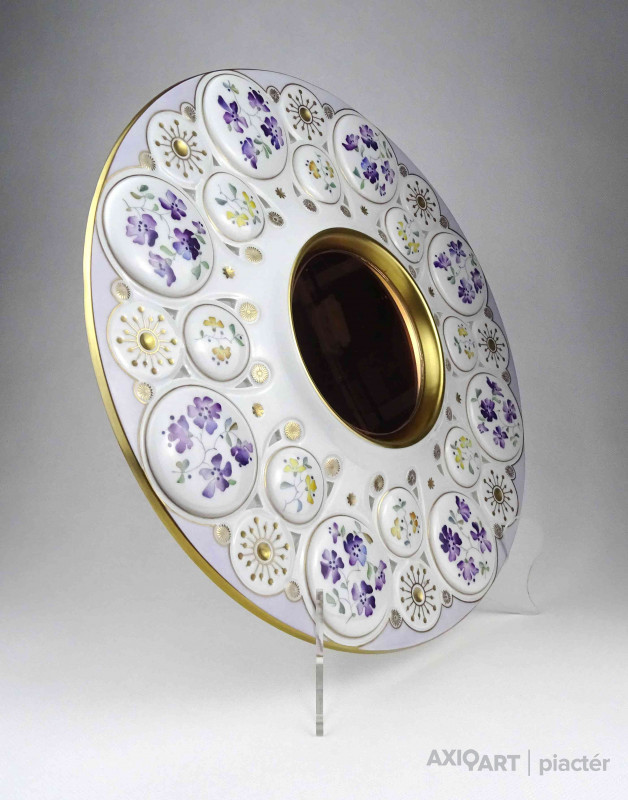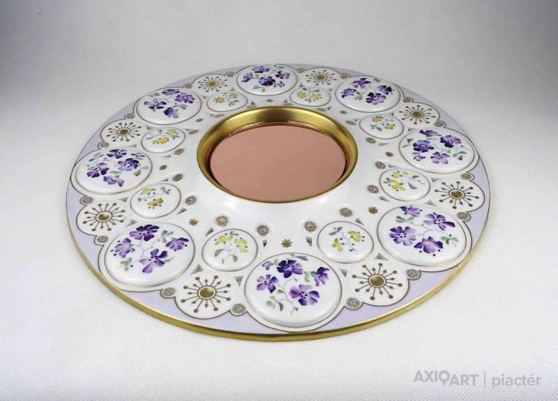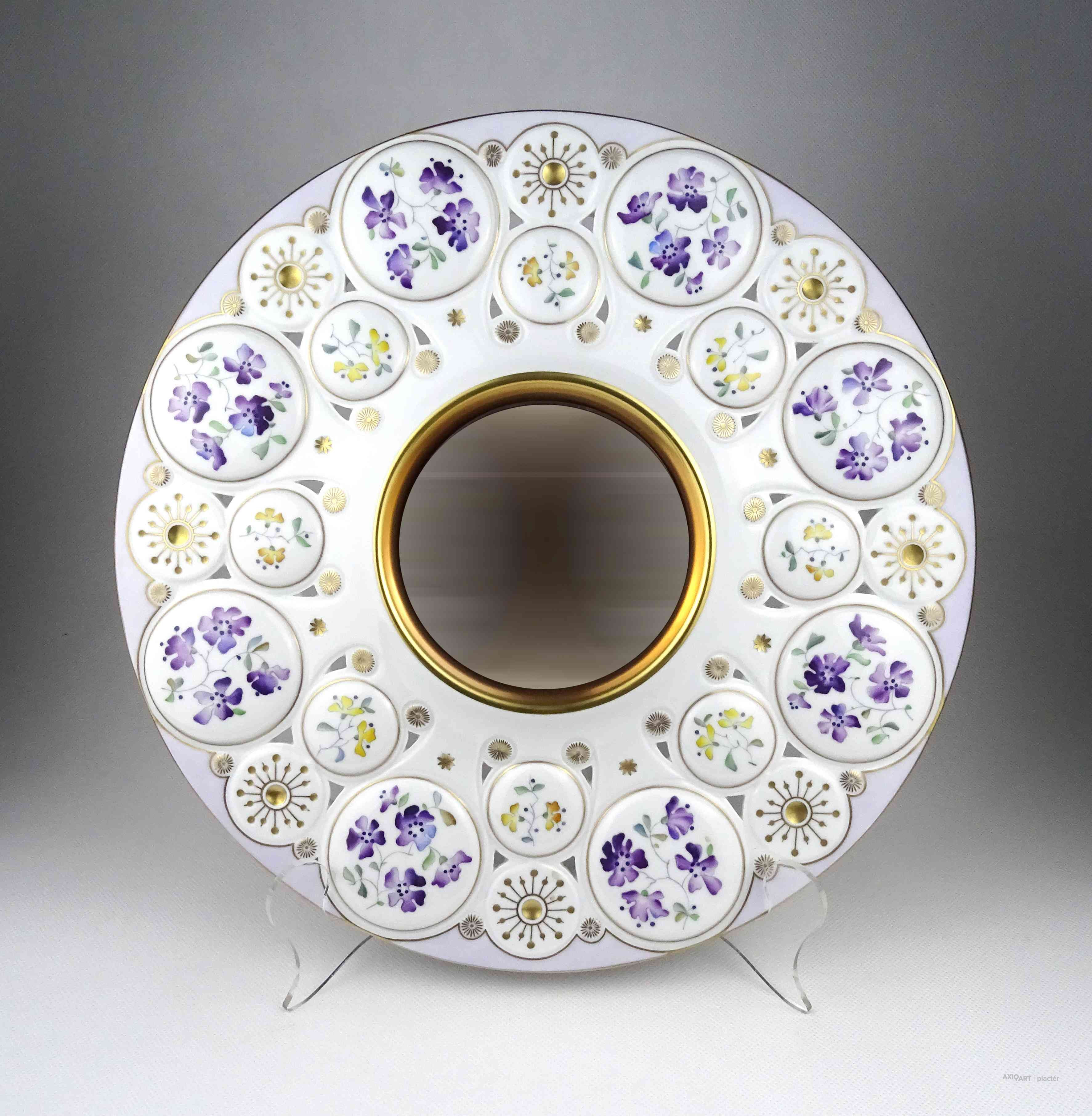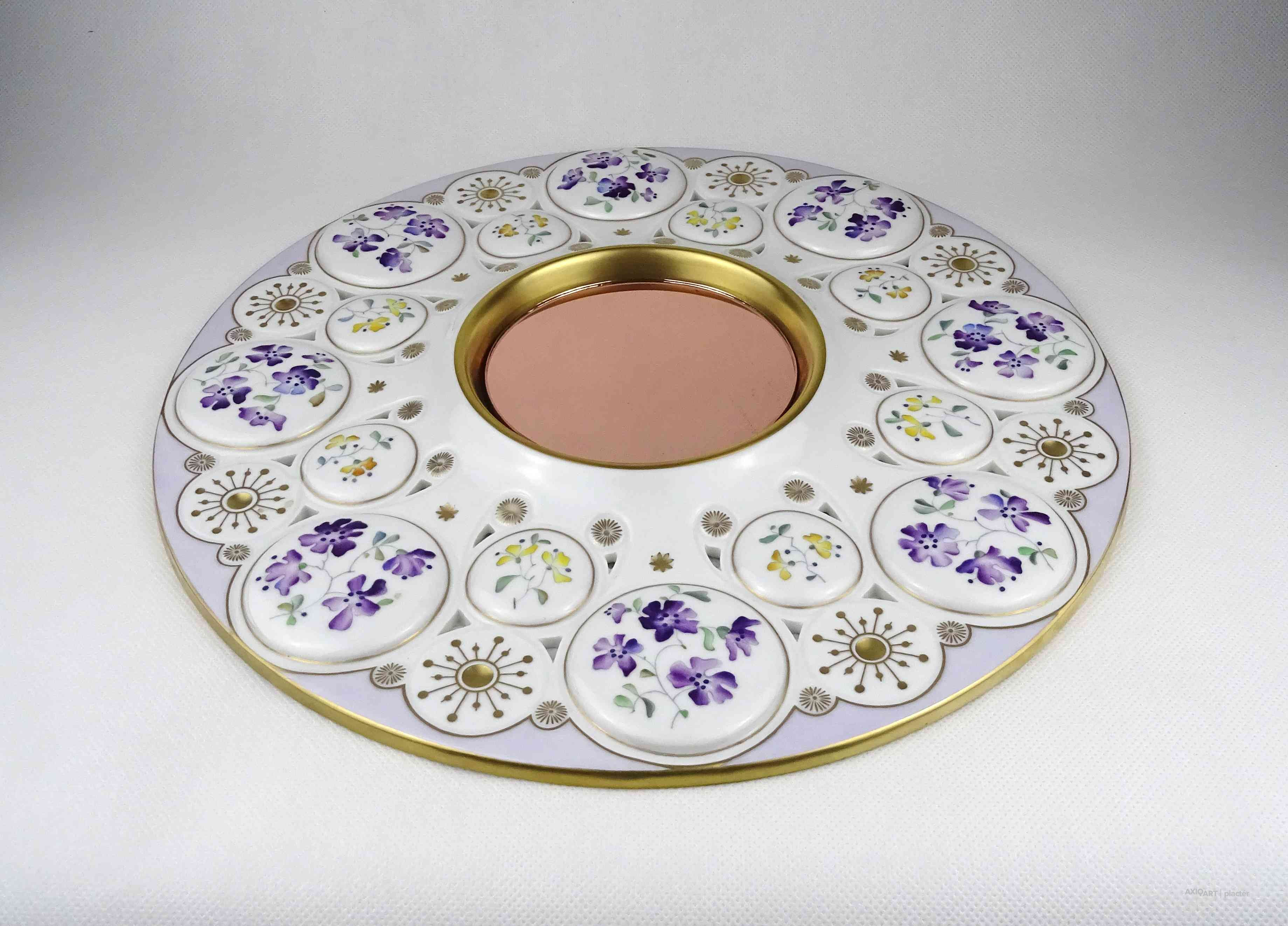 Hibátlan állapotú, nagyméretű, áttört szélű, virágmintás, Herendi porcelán tükör, porcelán keretes falitükör. Teljesen hibátlan, azonnal ajándékba adható állapotban van. Aranyozása karcmentes, makulátlan!