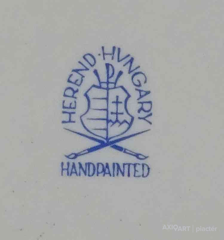 [1Y459/Z008] Régi, hibátlan állapotú, jelzett, szélén áttört, fonott, szögletes alakú, kézzel festett, Eton mintás Herendi porcelán kínáló tál. Alján kék Herendi márkajelzés: HEREND HUNGARY HANDPAINTED Mélynyomással: HEREND Pirossal formaszám: 7377 / ETON Magasság: 2.9 cm Szélesség: 15.1 cm Hosszúság: 15.1 cm Súly: 0.24 kg