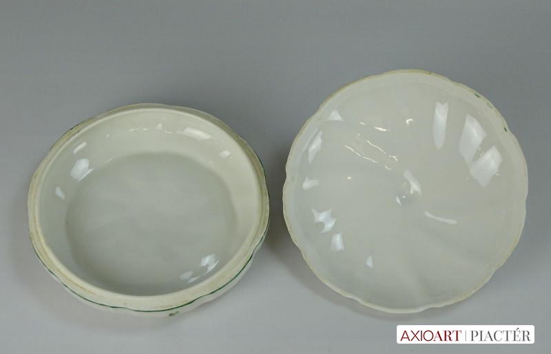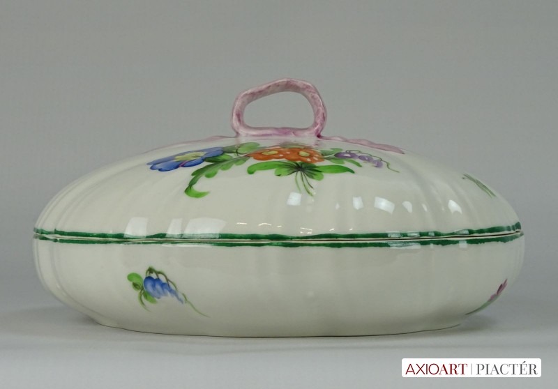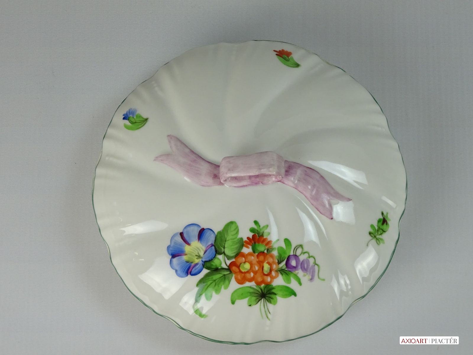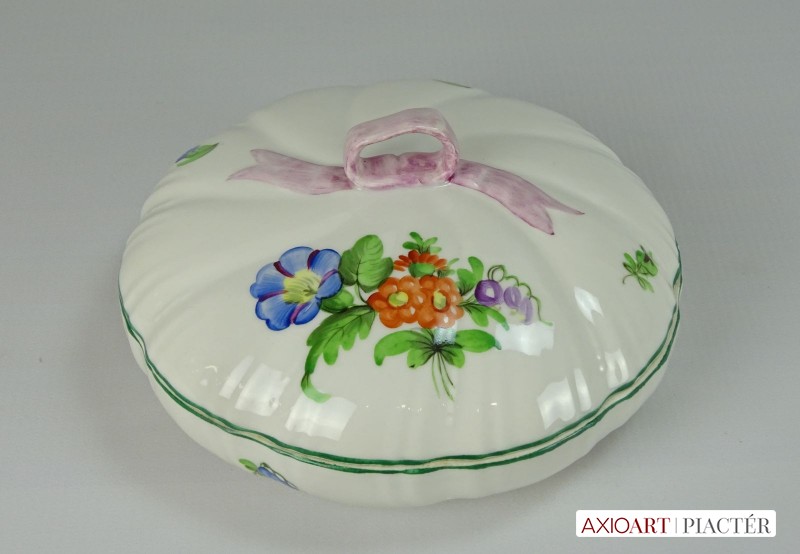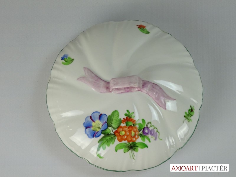 Ritka formájú, tetején szalag mintás herendi porcelán bonbonier, teljesen hibátlan.