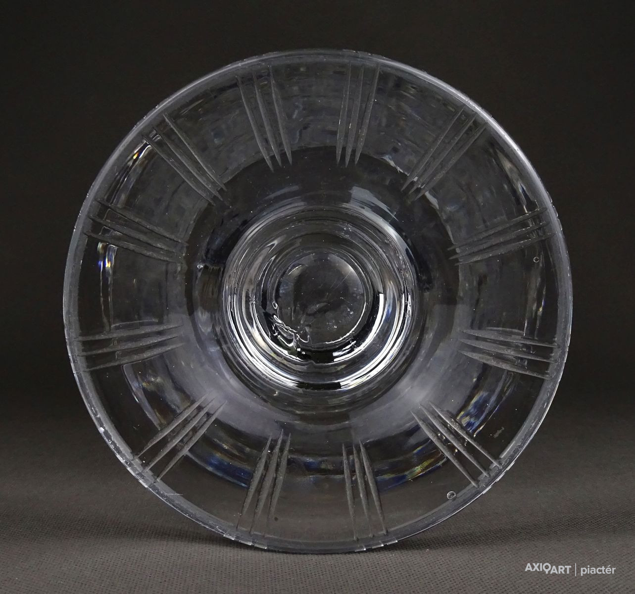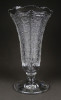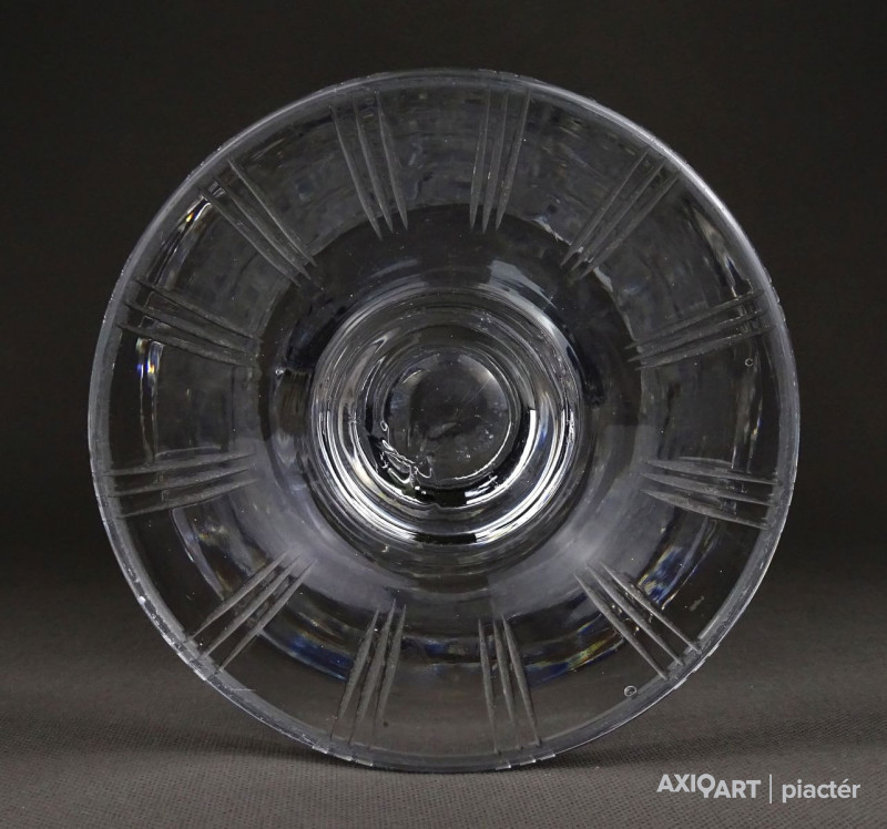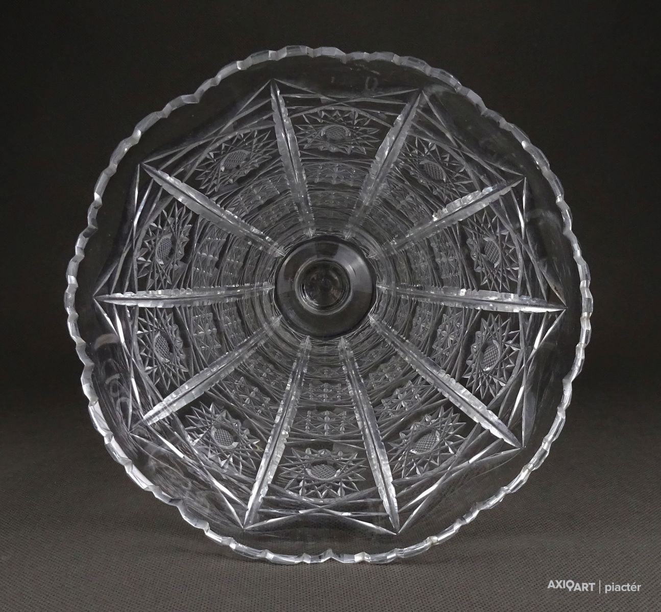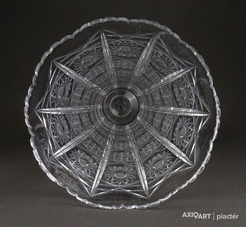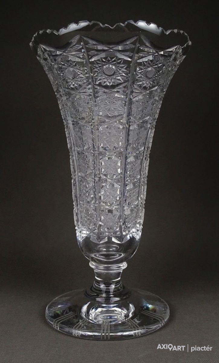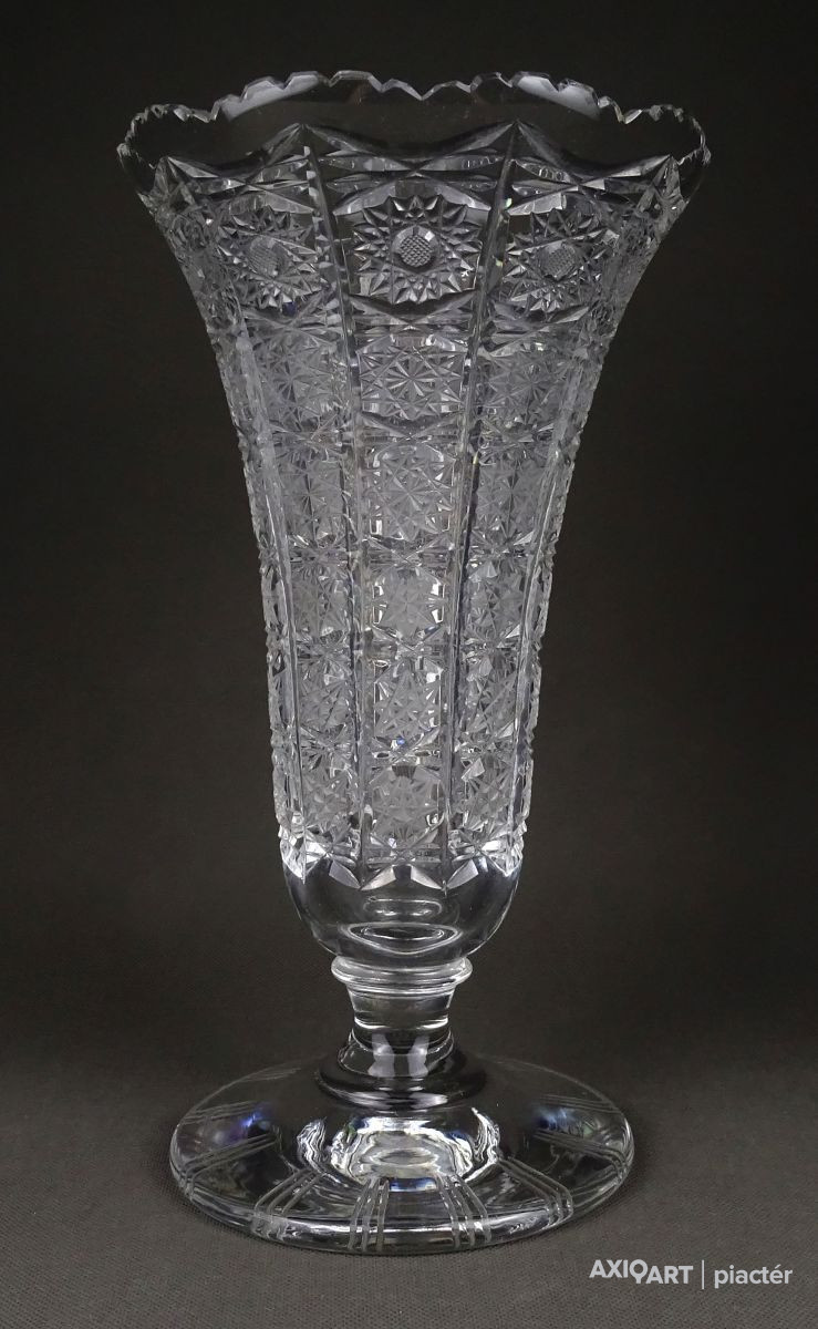 Hibátlan állapotú, hatalmas méretű, talpas, kehely alakú csiszolt kristály váza. A váza teljes felülete gazdagon díszített, kézi csiszolt.