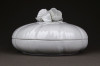 [1D599/UZ-N] Nagy méretű porcelán bonbonier. Ritka forma. Tetején plasztikus virág díszítés. A virágdíszítésen egy pici lepattanás található, lásd fotó. Alján mélynyomású Herendi jelzés: HEREND Formaszám: 6170 Magasság: 9.5 cm Szélesség: 16.5 cm Súly: 0.6 kg