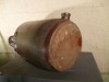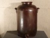 Óriási méretű, extra vastagfalú, nagyon szép állapotú, sötétbarna színű kőcserép tároló edény, ülepítő edény.