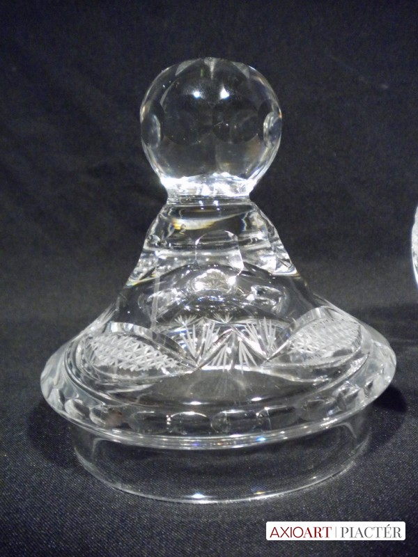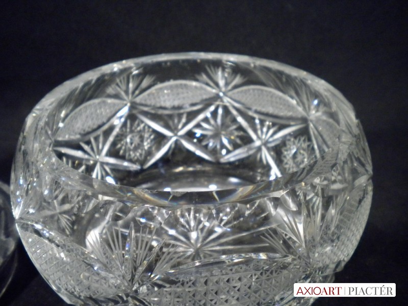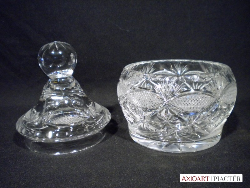 Nagyméretű, hibátlan fedeles ólomkristály üveg bonbonier, cukortartó, kínáló.