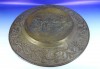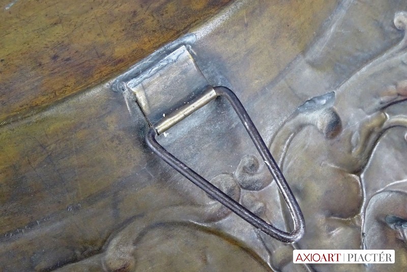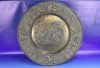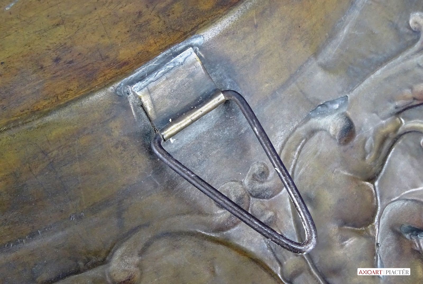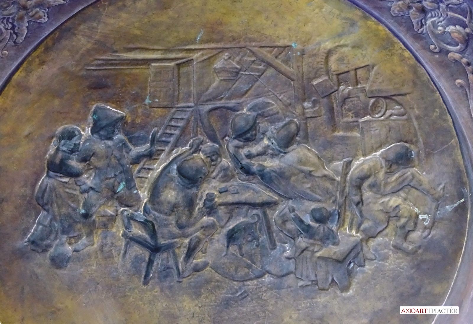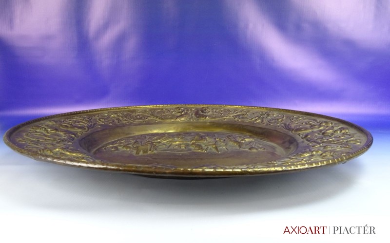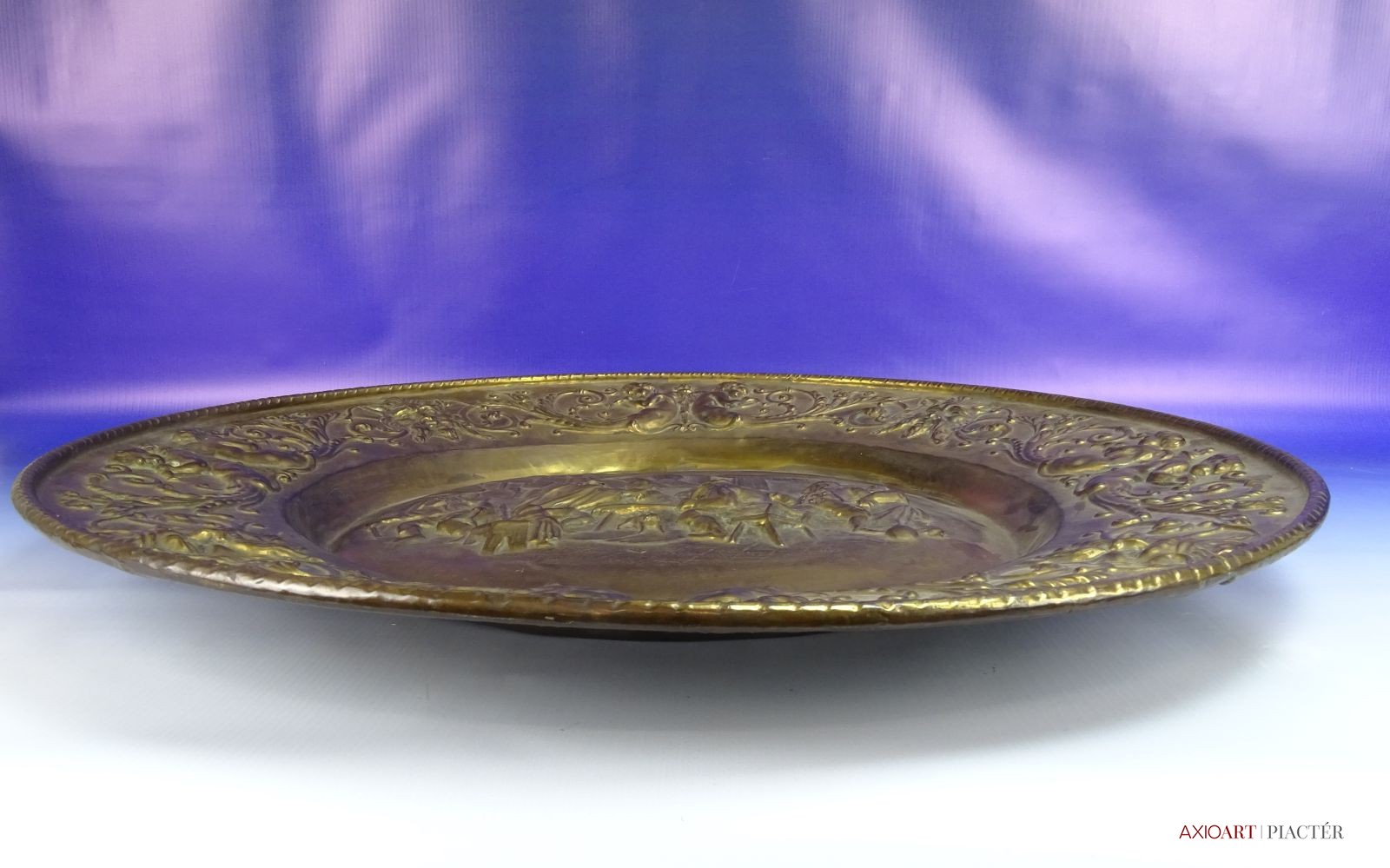 Régi XX. század eleji jelenetes fali sárgaréz kézimunka tál.