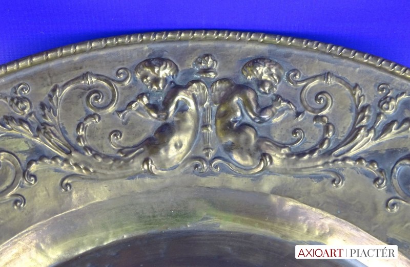 Hatalmas méretű angyalos réz dísztál 63 cm