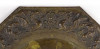[1P644/X056] Régi XX. század eleji jelenetes fali réz kézimunka tál. Hajtott széllel, középen 10 alakos jelenet, körben nagy méretű nyolc sárkánydíszítés látható. Hátoldalán sorszám: 2239 Szélesség: 58.5 cm Súly: 1.16 kg