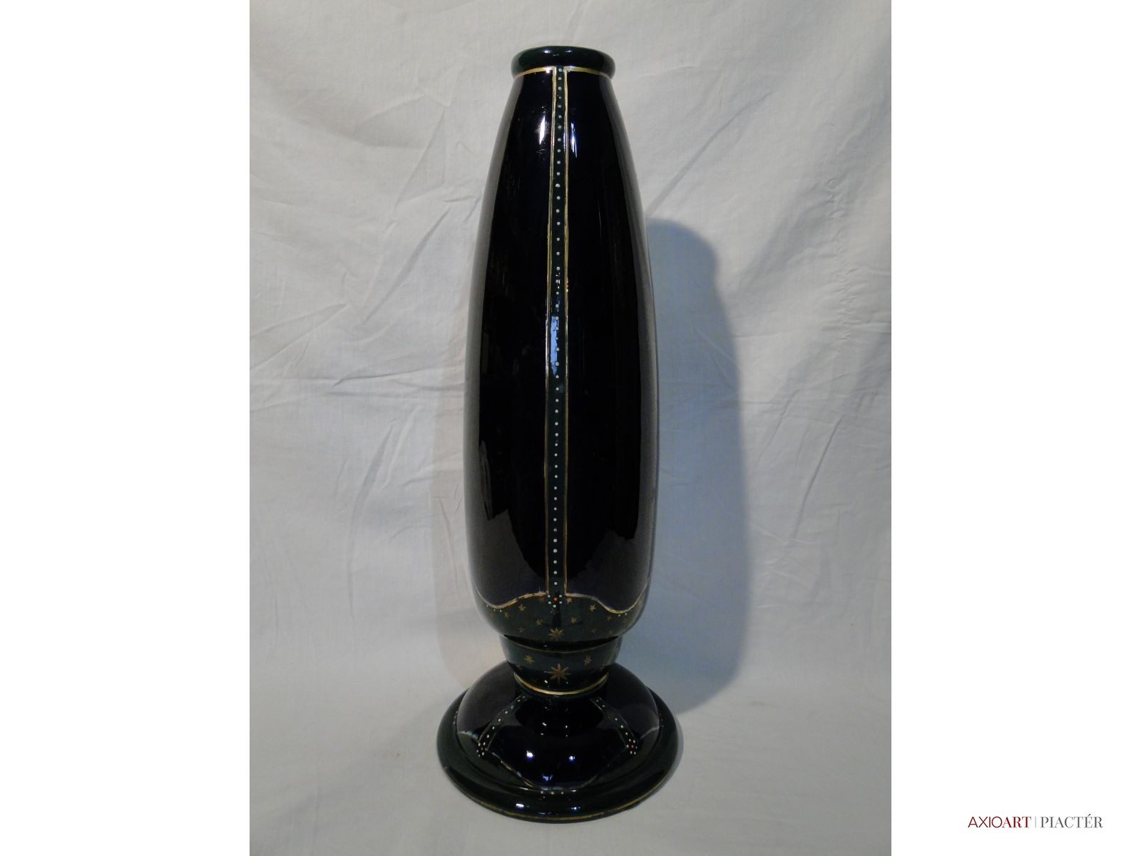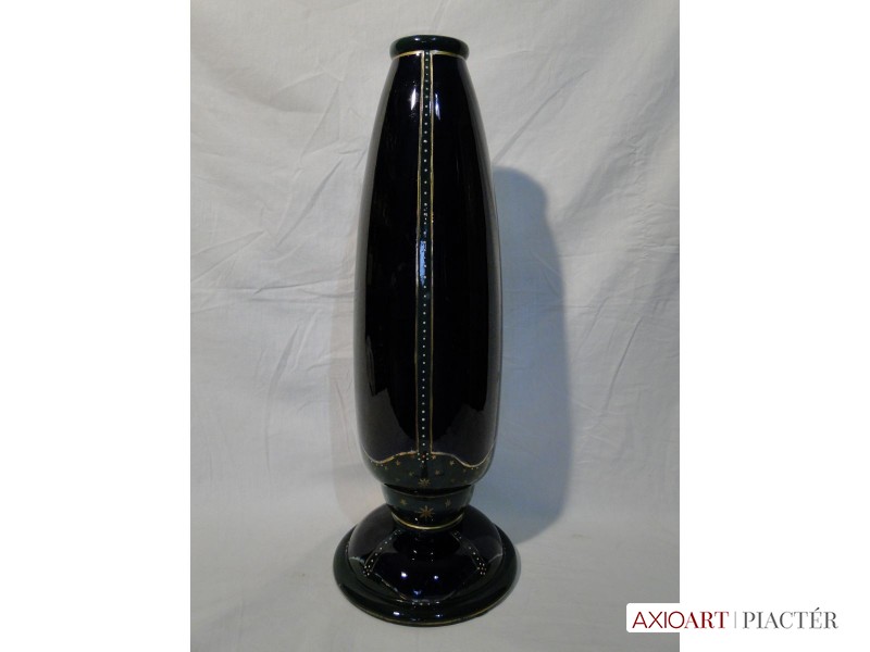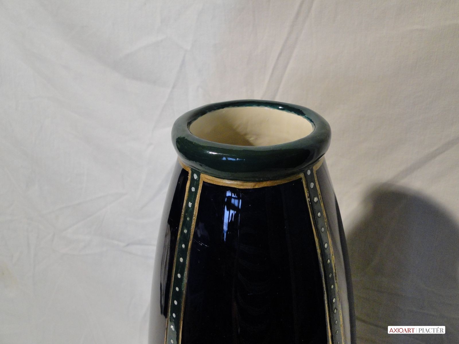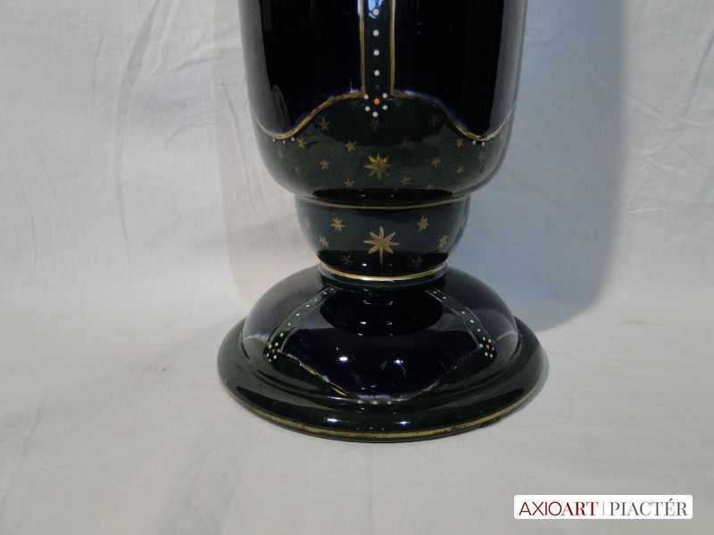 Gyönyörű, kobaltkék, méregzöld antik majolika váza, cca. 1900-as évek elejéről származik.