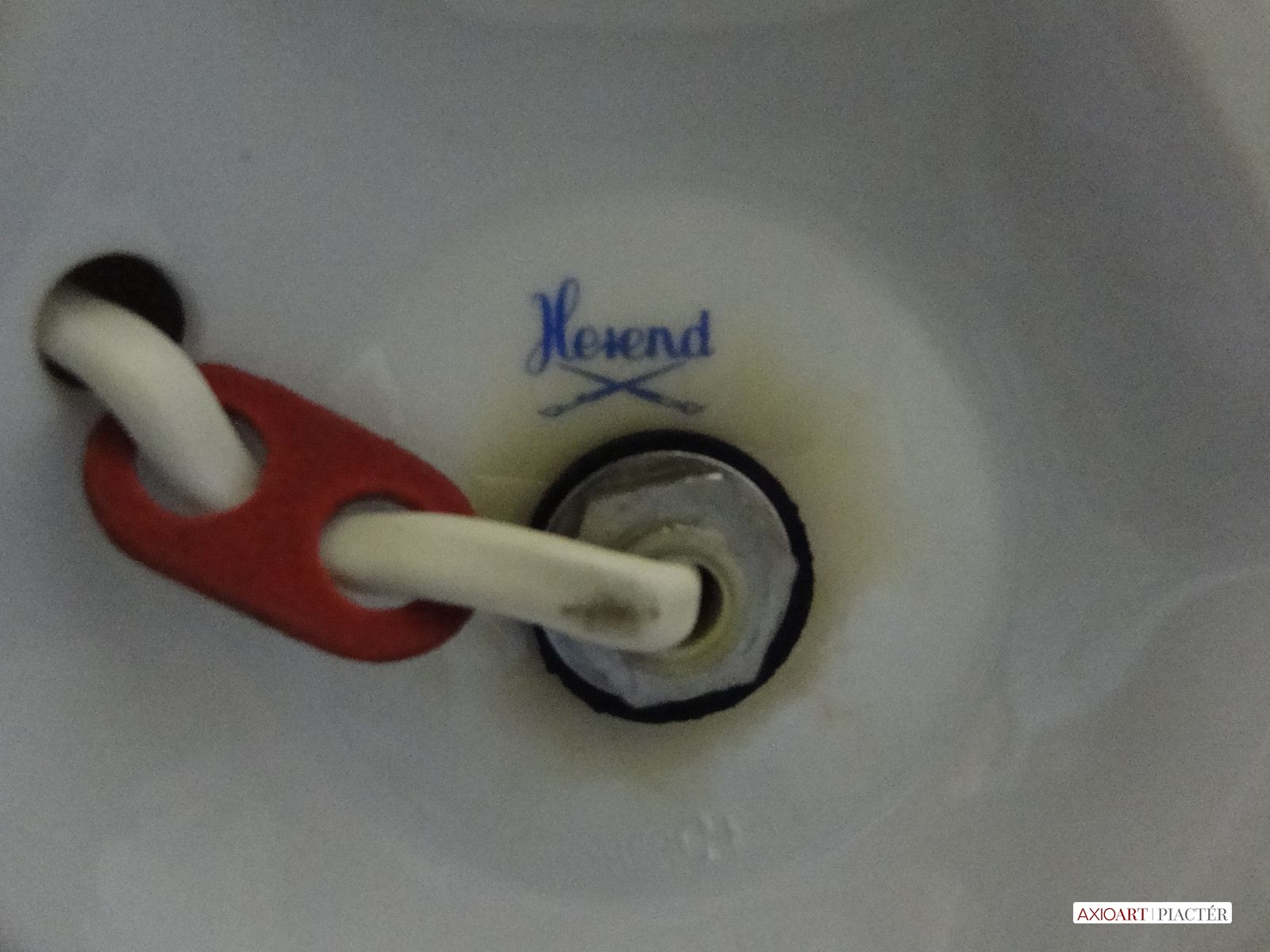 [6169/VTR-7] Kifogástalan, működőképes darab, hibátlan eredeti ernyővel. Alján kék herendi márkajelzés. Magasság: 50 cm Szélesség: 36 cm Súly: 1.453 kg A bura alsó átmérője 36 cm, a lámpatest 27 cm magas.