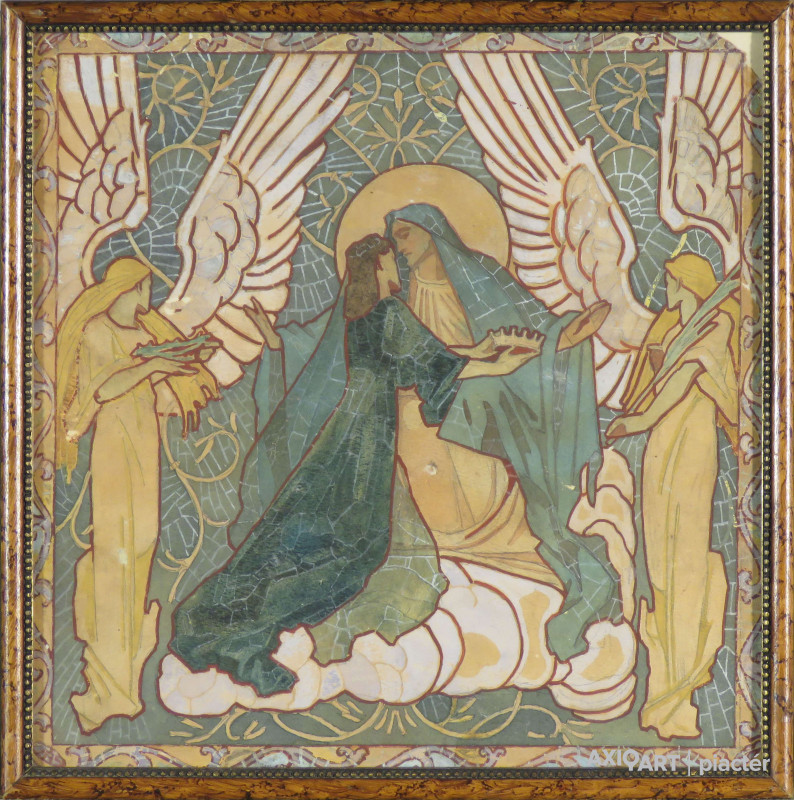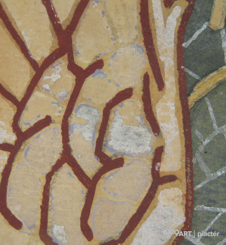 [FKD019/Bp58/38] A kép mérete: 22 x 34 cm keret nélkül. Készült: Rézkarc, Papír A kép Remsey Jenő György (Nagykőrös, 1885, Gödöllő, 1960) alkotása. Jelezve jobbra lent "Remsey (ceruzával)" A festmény jó állapotban van. Keret: Ép Magyar festők és grafikusok életrajzi lexikona I-II. Festő. 1905-1909 között Budapesten az Iparrajziskolában tanult, majd a gödöllői művésztelep tagja lett, ahol 1914-ig dolgozott. 1909-ben a KÉVE tagjai sorába választotta, s rendezésükben számos tárlaton vett részt. 1913-ban a nagybányai szabadiskolában képezte magát, majd a KÉVE tagjaként ösztöndíjjal Párizsba is elkerült, de tanulmányutakat tett Bécsbe és két ízben Münchenben is. 1924-ben egyik alapítója és elnöke volt a Spirituális Művészek Szövetségének, majd létrehozta annak lapját, a Fáklyát. 1937-41 között a Nemzeti Figyelő munkatársaként dolgozott, 1952-ben tagja lett a Szinyei Alkotóközösségnek, 1960-ban pedig a Rézkarcoló Művészek Alkotóközösségének. 1909-ben vett részt először a KÉVE tárlatán, 1920-ban újra. 1923-ban a Helikonban, 1924-ben és 1944-ben a Nemzeti Szalonban, 1935-ben és 1964-ben az Ernst Múzeumban, 1947-ben pedig a Szalmássy Galériában volt kiállítása. 1957-64 között több tárlatot is rendeztek műveiből Párizsban, de a KÉVE által alkotásai elkerültek berlini, düsseldorfi, bécsi, genfi, nürnbergi, lipcsei seregszemlékre is. Remsey hosszú pályájának kezdete a szecesszió stílusirányzatához kapcsolódott. Részt vett a szecesszió eszmeiségének elkötelezett gödöllői művésztelep munkájában, s egészen haláláig Gödöllőn élt. Így nem csoda, ha mindvégig ápolta a művésztelep emlékét, mely saját pályáján is az első döntő jelentőségű inspirációt és művészetközösséget jelentette. Akárcsak Körösfői és Nagy Sándor, ő is szimbolikus sugallatú műveket alkotott, amelyekre a lapidáris formaalkotás, a stilizáció, a vonalkontúrok hangsúlyos szerepe, a homogén színsíkok alkalmazása volt jellemző. Gobelintervezéssel is foglalkozott. Díjak: Benczúr-díj; Hors Conours-oklevél, Bécs; Gödöllő város díszpolgára. Több műve a Magyar Nemzeti Galéria tulajdonát gazdagítja (Énekeskoldusok, Ködfoszlás a Dunán, Az irgalmas szamaritánius, Szent család, Önarckép). A budapesti Lónyai utcai református gimnázium számára 1942-ben egy freskót alkotott (A magyar reformáció szellemtörténete). (Éber, RI-NM, MMFRA, ML) Magyar festők és grafikusok életrajzi lexikona I-II. Műgyűjtők és kereskedők kézikönyve Festő. Budapesten tanult, majd a gödöllői művésztelep tagja volt. 1909-ben koll. kiállítása volt a KÉVE tárlat keretében. 1913-ban a nagybányai festőiskolában dolgozott. A KÉVE tagjaként ösztöndíjjal Párizsba is elkerült, de tanulmányutakat tett Bécsben, és Münchenben is. 1920-ban ismételten állított ki műveket a KÉVE tárlatán. 1923-ban a Helikonban, 1924-ben a Nemzeti Szalonban volt kiállítása. A Spirituális Művészek Szövetségének tagja volt. Alkotásait stilizálja s főleg dekoratív hatásokra törekszik. Több műve az MNG tulajdonában van. (Éber, RI-NM) Magyar festők és grafikusok adattára Művészi képzettségét az a kapcsolat segítette kibontakozni, amelyet Gulácsy Lajossal, Erdei Viktorral és Fülep Lajossal teremtett. A KÉVE tagja lett és ösztöndíjjal Párizsba került. Tanulmányutakat tett Bécsben és Münchenben, majd itthon a Gödöllői Művésztelepre került. Alapító tagja volt az 1924-ben alakult Spirituális Művészek Szövetségének. 1924-ben és 1944-ben a Nemzeti Szalonban, 1935-ben és 1964-ben az Ernst Múzeumban és 1947-ben a Szalmássy Galériában vett részt csoportos kiállításokon. Eleme a kompozíció, a sokalakos, a nagy csoportokat fölölelő képek problémája, amely képszerkesztő hajlandóságát, rendező képességét foglalkoztatja és alkalmat ad arra, hogy témáit a maga sajátos módján adja elő. Ez pedig a díszítő stilizálás nyelve. Képei síkszerűek, nagy dekoratív színfoltok mozaikszerű együttesei, amelyek erőteljes kontúrhatásukkal és fényproblémáikkal gobelin terveknek vagy üvegfestményeknek hatnak. Írói munkássága is számottevő. - Irod.: Gellér Katalin - Keserű Katalin: A gödöllői kismesterek. MTA 1981. I. 441. Művészeti lexikon I-IV. Festő, költő és író. Bp.-en, Bécsben és Münchenben tanult, majd a gödöllői művésztelep tagja lett. Számos külföldi kiállításán kívül 1909-ben és 1920-ban kollektív kiállítása nyílt a KÉVE-tárlat keretében, 1923-ban a Helikon szalonjában, 1924-ben és 1944-ben a Nemzeti Szalonban, 1935-ben és 1964-ben az Ernst Múzeumban, 1947-ben a Szalmássy Galériában. 1957 és 1964 között Párizsban több kiállítást rendeztek műveiből. 1924-ben egyik alapítója s elnöke volt a Spirituális Művészek Szövetségének. Több műve (Énekeskoldusok, Ködfoszlás a Dunán, Az irgalmas szamaritánius, Szent Család, Önarckép stb.) a Nemz. Gal. tulajdona. Szecessziósan stilizált, szimbolikus ihletésű képeivel expresszív hatásokra törekedett. Művészeti lexikon I-II. Budapesten tanult, azután a gödöllői művésztelep tagja volt. 1909. és 1920. kollektív kiállítása volt a Kéve tárlat keretében. 1923. a Helikon szalónjában, 1924. a Nemzeti Szalónban. A Spirituális Művészek Szövetségének tagja. Énekes koldusok c. olajfestménye a Székesfővárosi Múzeum, Anyám arcképe, Ködfoszlás a Dunán, Az irgalmas szamaritánius, a Szent Család és Önarckép c. művei a Szépművészeti Múzeum tulajdonában vannak. Képeit stilizálja s főleg dekoratív hatásokra törekszik. Művész életrajzok kortárs magyar képzőművészek Művészeti tanulmányait Bécsben, Münchenben és a gödöllői művésztelepen végezte. 1907 óta szerepel a hazai és külföldi nyilvá