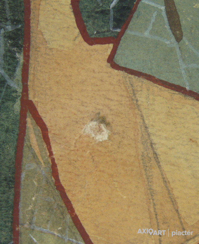 [FKD027/Bp4/60] A kép mérete: 60 x 82 cm keret nélkül. Készült: Olaj, pasztell, Papír (kasírozva) A kép Szabó Zoltán Angyalföldi (Budapest, 1929) alkotása. Jelezve jobbra lent "Szabó Z 73" A festmény jó állapotban van. Keret: Ép Magyar festők és grafikusok életrajzi lexikona I-II. Festő. Rajkai György beszélte rá, hogy jelentkezzék felvételre a Képzőművészeti Főiskolára. 1948-49-ben a Dési Huber-szakkörben rajzolt, festett Gráber Margit vezetésével. 1950-ben jelentkezett a Képzőművészeti Főiskolára, ahol 1951-ben kezdte meg tanulmányait Fónyi Géza, Barcsay Jenő és Domanovszky Endre keze alatt. 1953-54-ben a főiskola megvált tőle, lekerült Tatabányára, ahol a művésznövendékek számára művésztelepet létesítettek. Számos műve kapcsolódik a tatabányai periódushoz, amelynek élményéből még évek múlva is bőven merít. 1955-ben visszakerült a főiskolára, ahol 1958-ban fejezete be tanulmányait. Ezt követően két évig - a Fiatal Művészek Stúdiójának tagjaként - a stúdió műtermében dolgozott. 1960-63 között Derkovits-ösztöndíjban részesült. Kiállító művészként első ízben 1958-ban a VII. Magyar Képzőművészeti Tárlaton szerepelt jelentősebb anyaggal. Ettől kezdve minden nemzeti tárlaton, a Fiatal Képzőművészek Stúdiójának bemutatóin, jelentősebb hazai és külföldön rendezett magyar seregszemléken részt vett alkotásaival (Ernst Múzeum, Műcsarnok, Tiszti Klub Budapest, Veszprém, Szolnok, Tatabánya, Vác, Győr, Kecskemét, Tallin, Berlin, Varsó, Belgrád, Párizs, Moszkva, stb.). Erőteljes formákkal komponált figurális kompozíciókat, portrékat, városképeket, csendéleteket alkotott olajban, pasztellben, szénnel és temperával. A Nyolcak, Nemes Lampért József és a korai Uitz Béla alkotások formai örökségének legrangosabb mai folytatója. A külföldiek közül Siqueiros és D. Rivera gyakoroltak rá nagy hatást, akik leginkább lehetnek expresszív stílusának mintaképei. Szabó végtelen humanizmusa, őszinte hite az alkotásban, a tiszta emberi kapcsolatokban és a szeretetben, az emberi lét himnuszává fokozódik vásznain. Monumentális, óriási lendület jellemzi alakjait, akár táblaképről, szénrajzról, akár monumentális munkáról van szó. Díjak: a Stúdió pályázatának I. díja; Munkácsy-díj; a Szolnoki Festészeti Triennále II. díja; Érdemes Művész. Sok murális alkotást is készített (Sátoraljaújhely, Csongrád, Baja, Bácsalmás, stb.). Alkotásai helyet kaptak a Magyar Nemzeti Galériában, a Legújabbkori Történeti Múzeumban és több vidéki képtárban. (Egri Mária: Szabó Zoltán, MÉ, H.J.: Műv. 1970/8, Műv. 1976/5, A.J.: Műv. 1985/2) Magyar festők és grafikusok életrajzi lexikona I-II. Műgyűjtők és kereskedők kézikönyve Festő. Művészeti tanulmányait a Dési Huber István szakkörben kezdte, ahol Gráber Margit korrigálta. 1950-ben jelentkezett Budapesten, a Képzőművészeti Főiskolára. Fónyi Géza, Barcsay Jenő és Domanovszky Endre voltak a mesterei. Siqueiros és Diego Rivera is nagy hatást gyakoroltak rá, akik leginkább lehetnek expresszív stílusának mintaképei. 1958 óta szerepel hazai és külhoni tárlatokon (Műcsarnok, Ernst Múzeum, stb.). 1960-63 k. Derkovits-ösztöndíjas volt. 1969-ben Munkácsy-díjjal tüntették ki. 1977-ben érdemes művész címet kapott. Végtelen humanizmusa, őszinte hite a munkában, a tiszta emberi kapcsolatokban, a szeretetben, az emberi lét himnuszává fokozódik vásznain. Monumentális, hatalmas lendület jellemzi figuráit, akár táblaképről, szénrajzról akár monumentális műről van szó. Sok murális munkát is készített (Sátoraljaújhely, Csongrád, Baja, Bácsalmás, stb.). A NYOLCAK, Nemes Lampért és a korai Uitz munkák formai örökösének legrangosabb mai folytatója. (MÉ, H.J.: Műv.-1970/8, Műv.-1976/5, A.J.: Műv.-1985/2) Magyar festők és grafikusok adattára Művészeti tanulmányait a Dési Huber szakkörben kezdte, majd 1951-1958-ban Fónyi Géza, Barcsay Jenő és Domanovszky Endre növendéke a főiskolán. 1958-tól minden fontosabb hazai és számos külföldi tárlaton részt vett. Kiállított többek között a Szovjetunióban, Bulgáriában, Jugoszláviában, az NDK-ban, Lengyelországban és Franciaországban. Több vidéki bemutató (Dunaújváros, Szeged, Kecskemét, Szolnok, Győr stb.) mellett 1970-ben az Ernst Múzeumban, 1976-ban a Műcsarnokban jelentkezett gyűjteményes anyaggal. 1976-ban önálló kiállítása volt Tallinban. 1978-ban az Ernst Múzeumban. A Kilencek alapító tagja, és valamennyi kiállításuk résztvevője. 1960-1963-ban a Derkovits-ösztöndíjat, 1969-ben Munkácsy-díjat, 1977-ben érdemes művészi címet kapott. - Művészetében központi helyet foglal el az ember. Végtelen humanizmus, őszinte hite a munkában, a tiszta emberi kapcsolatokban, a szeretetben az emberi lét himnuszává fokozódik vásznain. A Nyolcak formai örökségének legrangosabb mai folytatója. - Irod.: P.Sz.T.: Művész életrajzok. Bp. 1985.; Acsay Judit: Legszívesebben az eget festeném be. Beszélgetés Szabó Zoltánnal. Művészet, 1985. 2. Művészeti lexikon I-IV. Festő. 1951-58 között a Képzőművészeti Főiskolán Fónyi Géza, Barcsay Jenő és Domanovszky Endre tanítványa volt. 1958-tól állítja ki erőteljes formákkal komponált figurális kompozícióit (Almahámozók, Kesztyűs női portré stb.). 1965-ben sgraffitót készített egy sátoraljaújhelyi lakóházra. Művész életrajzok kortárs magyar képzőművészek 1958-ban kapott diplomát Fónyi Géza, Barcsay Jenő és Domanovszky Endre tanítványaként. Azóta minden fontosabb hazai rendezvény résztvevője, gyakorta kiállít külföldön is. Számos vidéki bemutató mellett 1970-ben az Ernst Múzeumban, 1976-ban a Műcsarnokban, 1983-ban a Tihanyi Múzeumban jelentkezett gyűjteménye