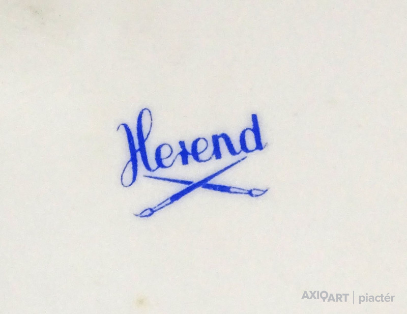 [1R669/Z028] Hibátlan állapotú, talapzaton álló botján támaszkodó, búsuló juhász Herendi figura, kezében pipa. Alján kék ecsetes Herendi jelzés: HEREND Mélynyomású jelzés: HEREND Formaszám: 5427 Magasság: 29.3 cm Szélesség: 12.5 cm Súly: 1.015 kg