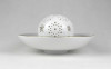 [1U214/X318] Hibátlan állapotú fehér Herendi porcelán mécsestartó, áttört mintákkal és aranyozással díszített porcelán gömb hozzá illő alátét tányérral. A gömb és a tányér is külön jelzett. A gömbben kék Herendi jelzés: HEREND HUNGARY HANDPAINTED Festett formaszám: 7997-2-00/PN-16 MJ A tányér alján kék Herendi jelzés: HEREND HUNGARY HANDPAINTED Festett formaszám: 7996-I-00/PN-16 MJ Magasság: 9.8 cm Szélesség: 19.6 cm Súly: 0.56 kg