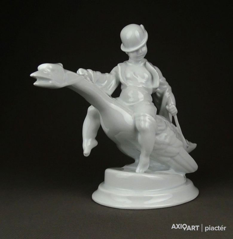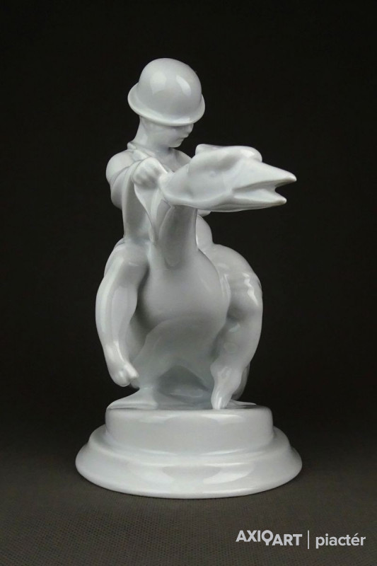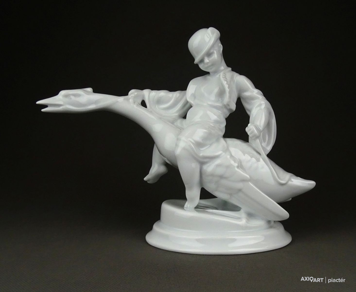 Herendi hófehér Ludas Matyi porcelán figura 20 cm