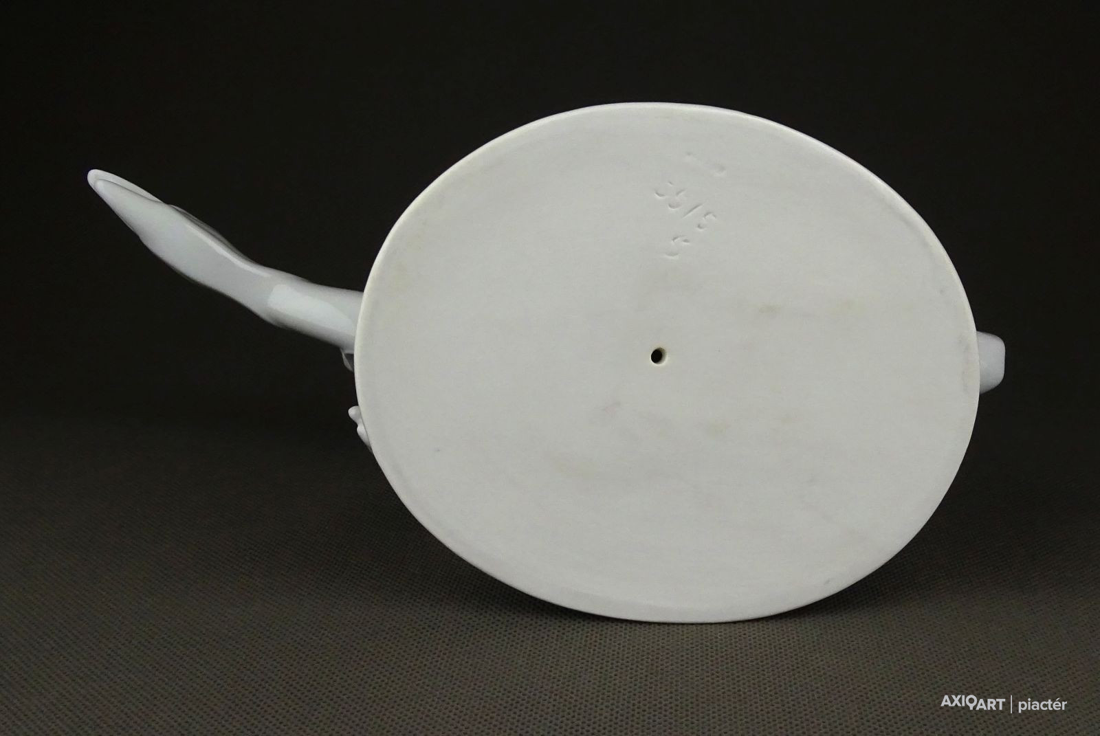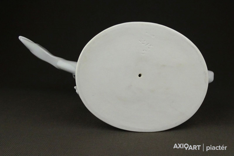 [1D646/UZ-K] Hibátlan állapotú, talapzaton álló, hófehér mázas Ludas Matyi Herendi porcelán figura. Alján mélynyomású Herendi jelzés: HEREND Formaszám: 5515 Magasság: 20 cm Szélesség: 11.3 cm Hosszúság: 24.3 cm Súly: 0.735 kg