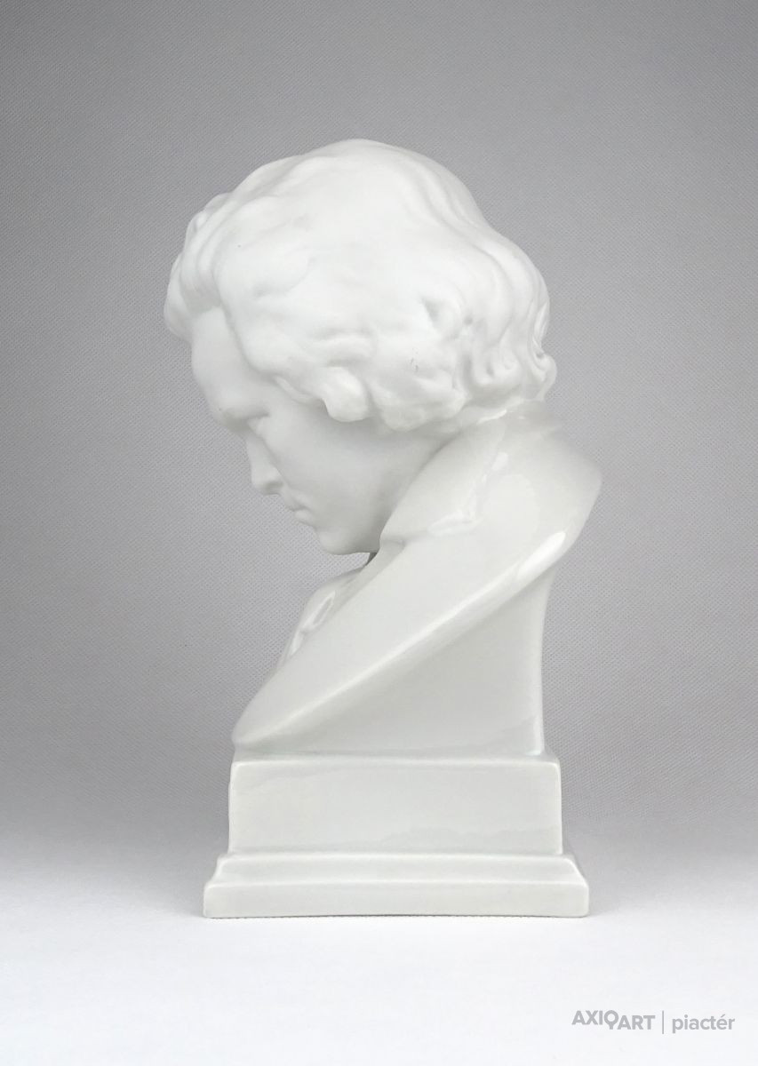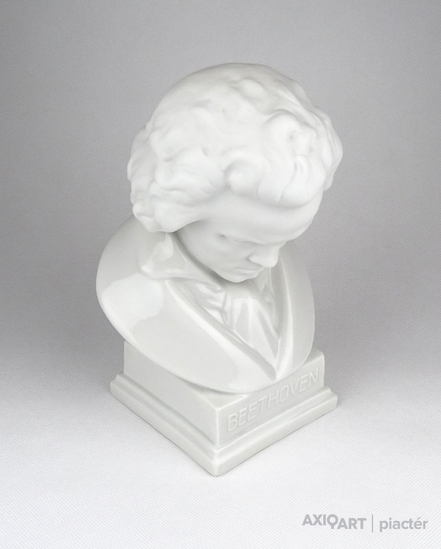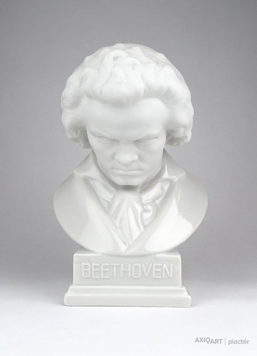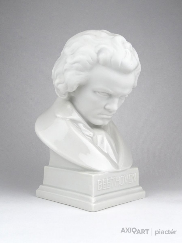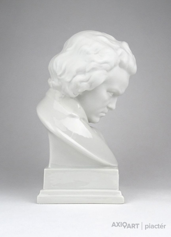 Régi, szép állapotú, jelzett, fehér színű Herendi porcelán Beethoven büszt, mellszobor.