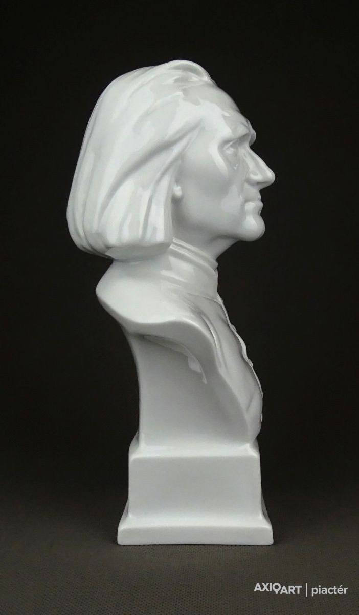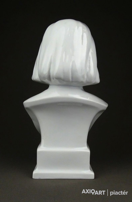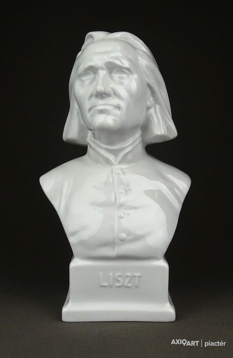 Régi, szép állapotú, jelzett, fehér színű Herendi porcelán Liszt Ferenc büszt, mellszobor.