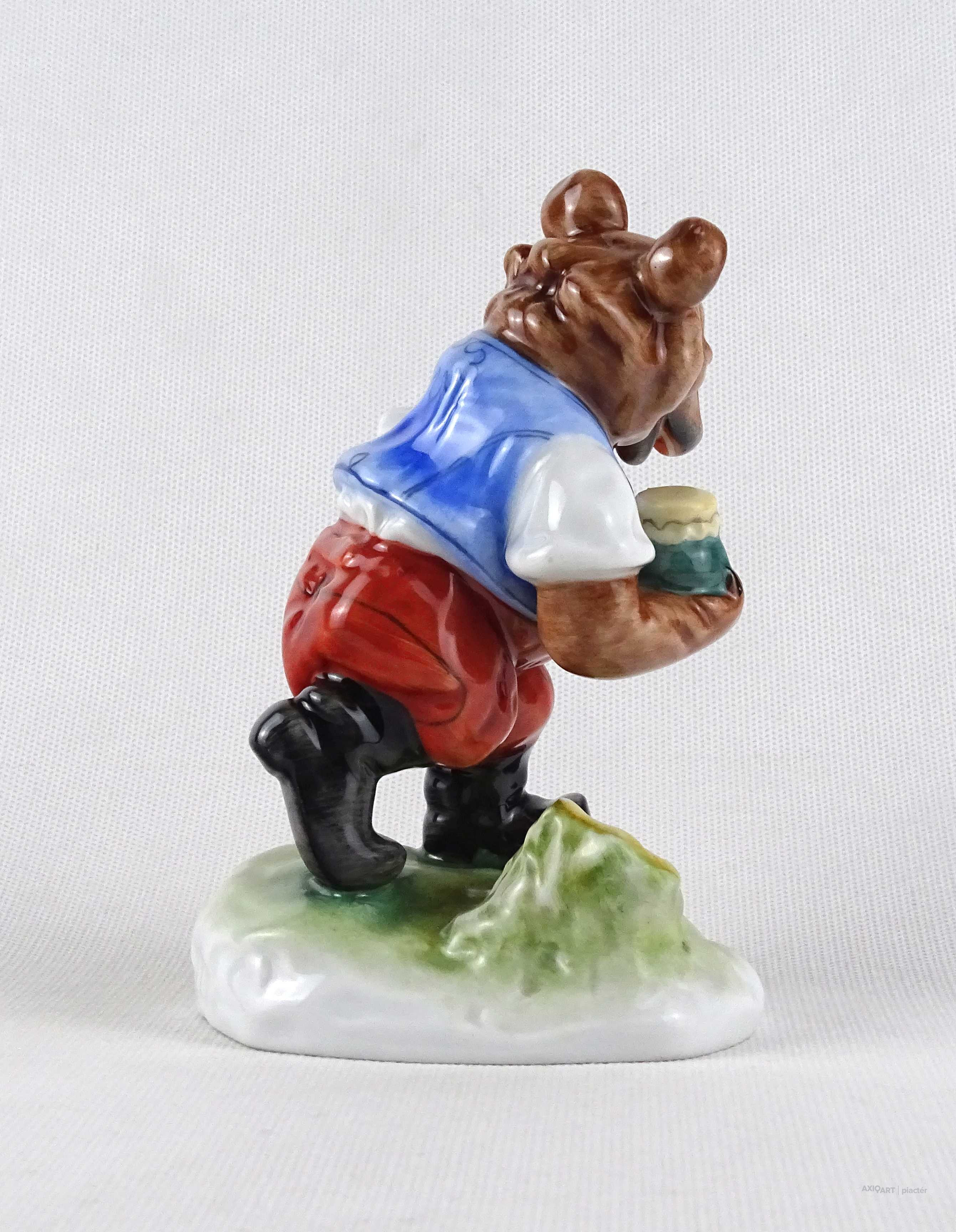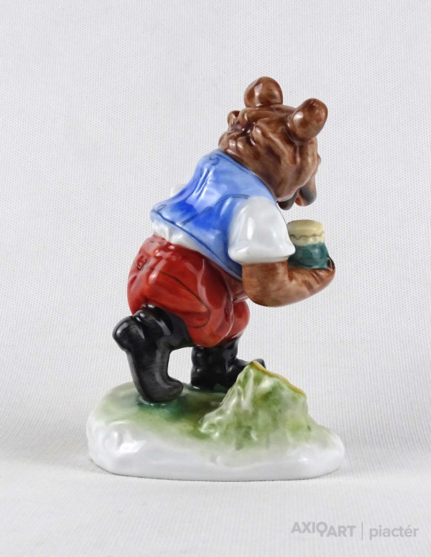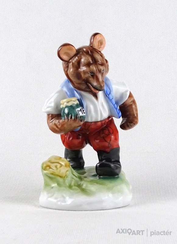 Hibátlan állapotú, kézzel festett Herendi porcelán figura. Medve figura, kezében mézescsupor.