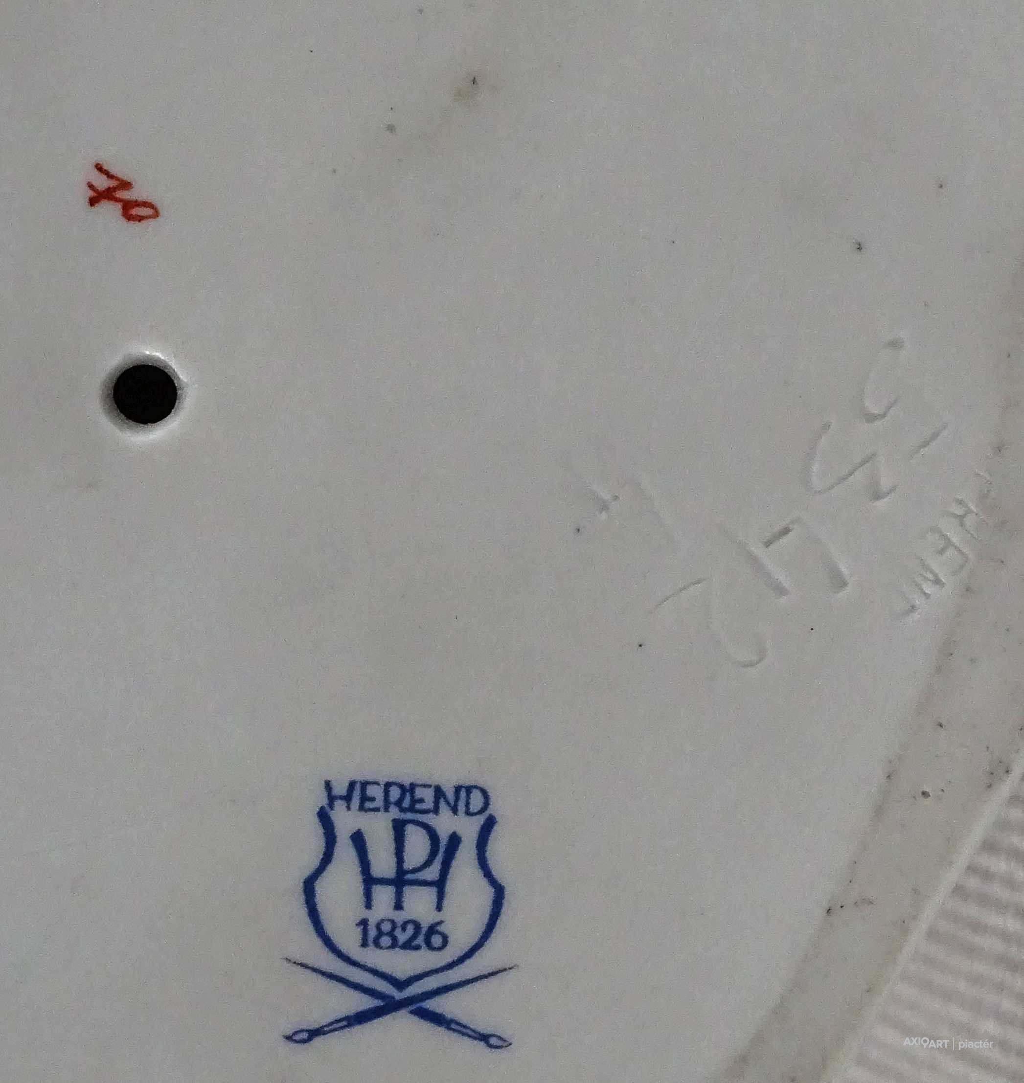 [1U643/Z010] Hibátlan állapotú, kézzel festett Herendi porcelán figura. Medve figura, kezében mézescsupor. Alján kék Herendi jelzés: HEREND Mélynyomással: HEREND Karcolt formaszám: 5342 Talapzaton formatervezőnek neve: MAUGSCH (Maugsch Gyula 1882-1946 szobrász) Magasság: 13.9 cm Szélesség: 8 cm Hosszúság: 9.3 cm Súly: 0.38 kg