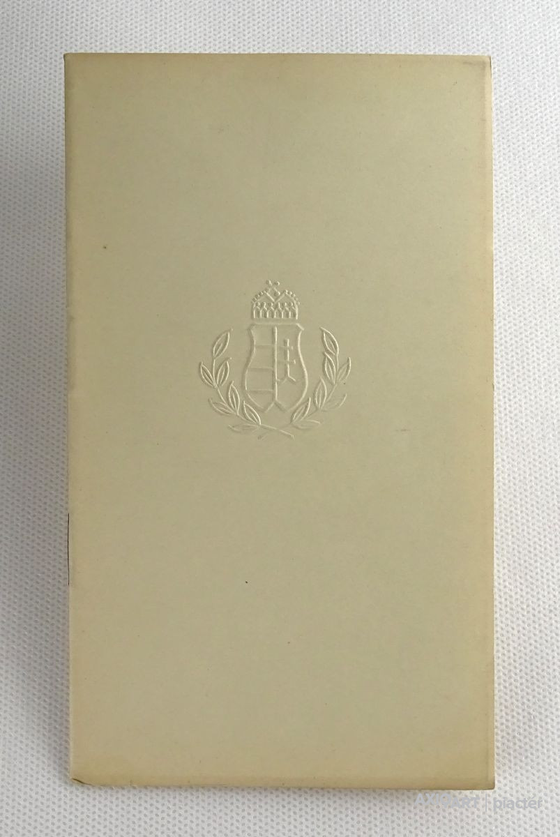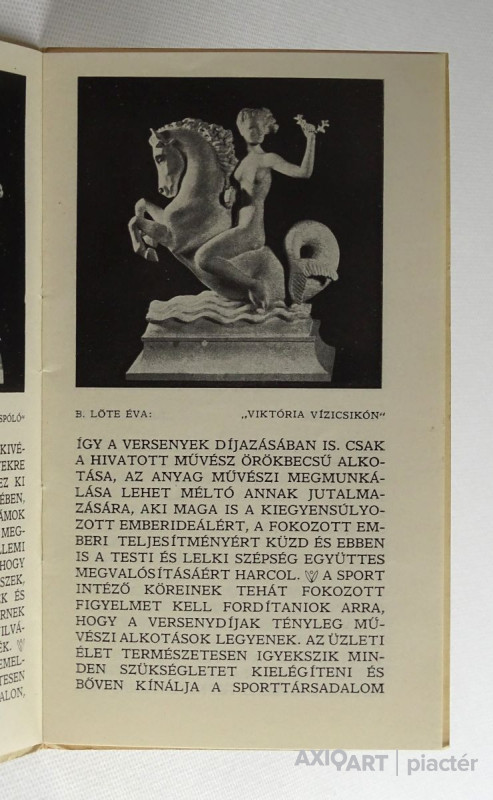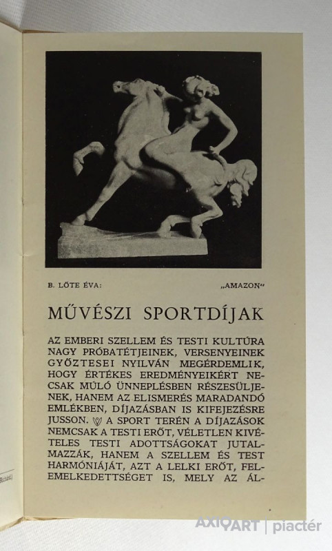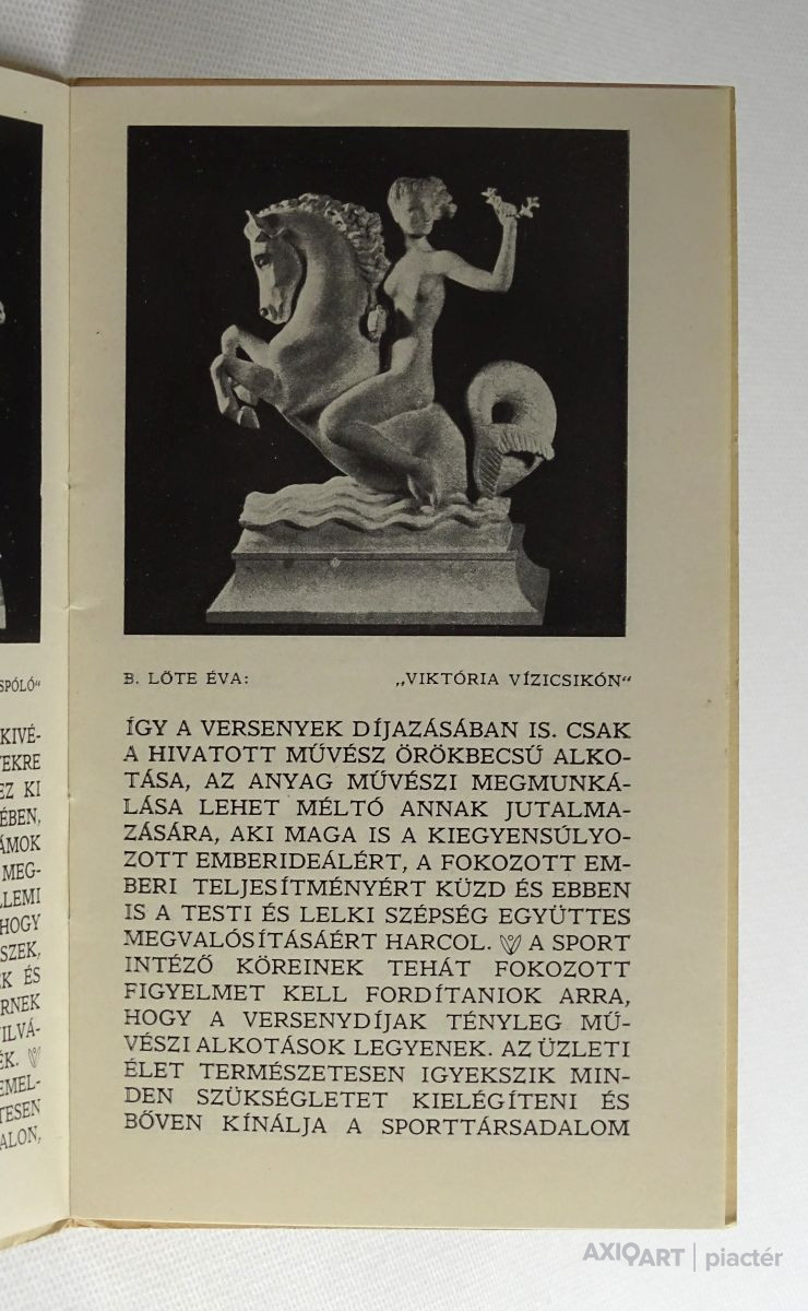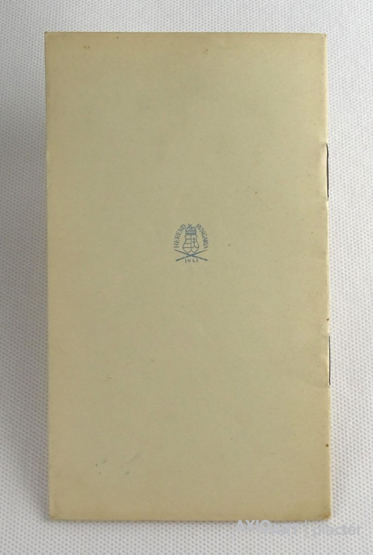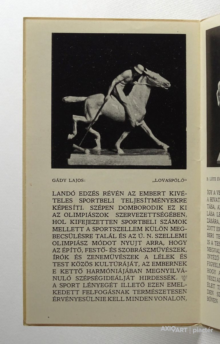 [1S374/X319] Dr. Say Géza : A művészi sportdíjak KIADJA A HERENDI PORCELLÁNGYÁR R.T. DR. SAY GÉZA MINISZTERI OSZTÁLYTANÁCSOS ELŐADÁSA A MAGYAR RÁDIÓBAN A CÍMLAPON: PANKOTAI-FARKAS BÉLA: "BÍRKÓZÓK" KIADÁSÉRT FELELŐS: DR. GULDEN GYULA HEREND HUNGARIA 1941 Benne: - B. LŐTE ÉVA: "AMAZON" - GÁDY LAJOS : "LOVASPÓLÓ" - B. LŐTE ÉVA: "VIKTÓRIA VÍZICSIKÓN" - FEKETE GÉZA : "DISZKOSZVETŐ" - GÁDY LAJOS : "KORCSOLYÁZÓK" - FEKETE GÉZA : "START" - ANTAL KÁROLY : "JÉGKORONGOS" - PANKOTAI-FARKAS BÉLA : "SÚLYDOBÓ" - PANKOTAI-FARKAS BÉLA : "ÖKÖLVÍVÓ" - GONDOS JÓZSEF : "OLYMPIAI TŰZ" - GONDOS JÓZSEF : "HÓDOLAT A GYŐZTESNEK" - KISFALUDI-STRÓBL ZS. : "HADIK-HUSZÁR" - VASTAGH GYÖRGY : "AGÁR" - Magasság: 16.5 cm Szélesség: 9.5 cm Súly: 0.02 kg
