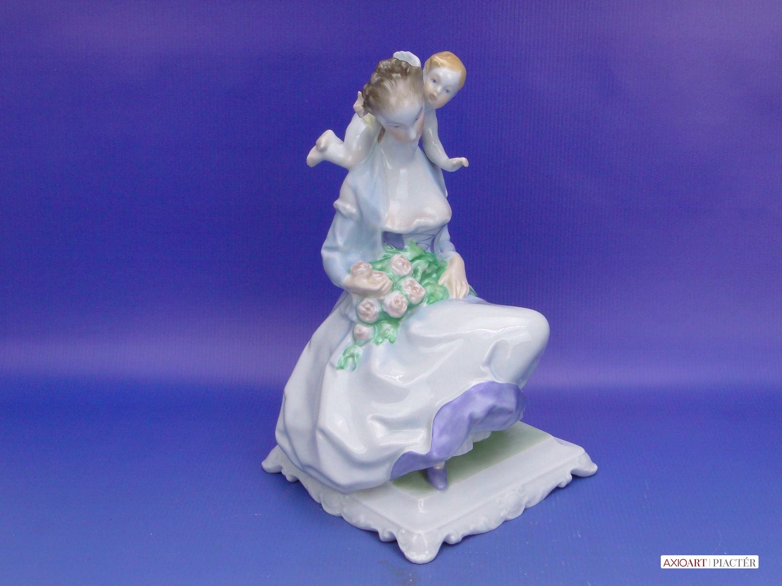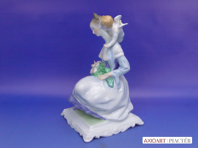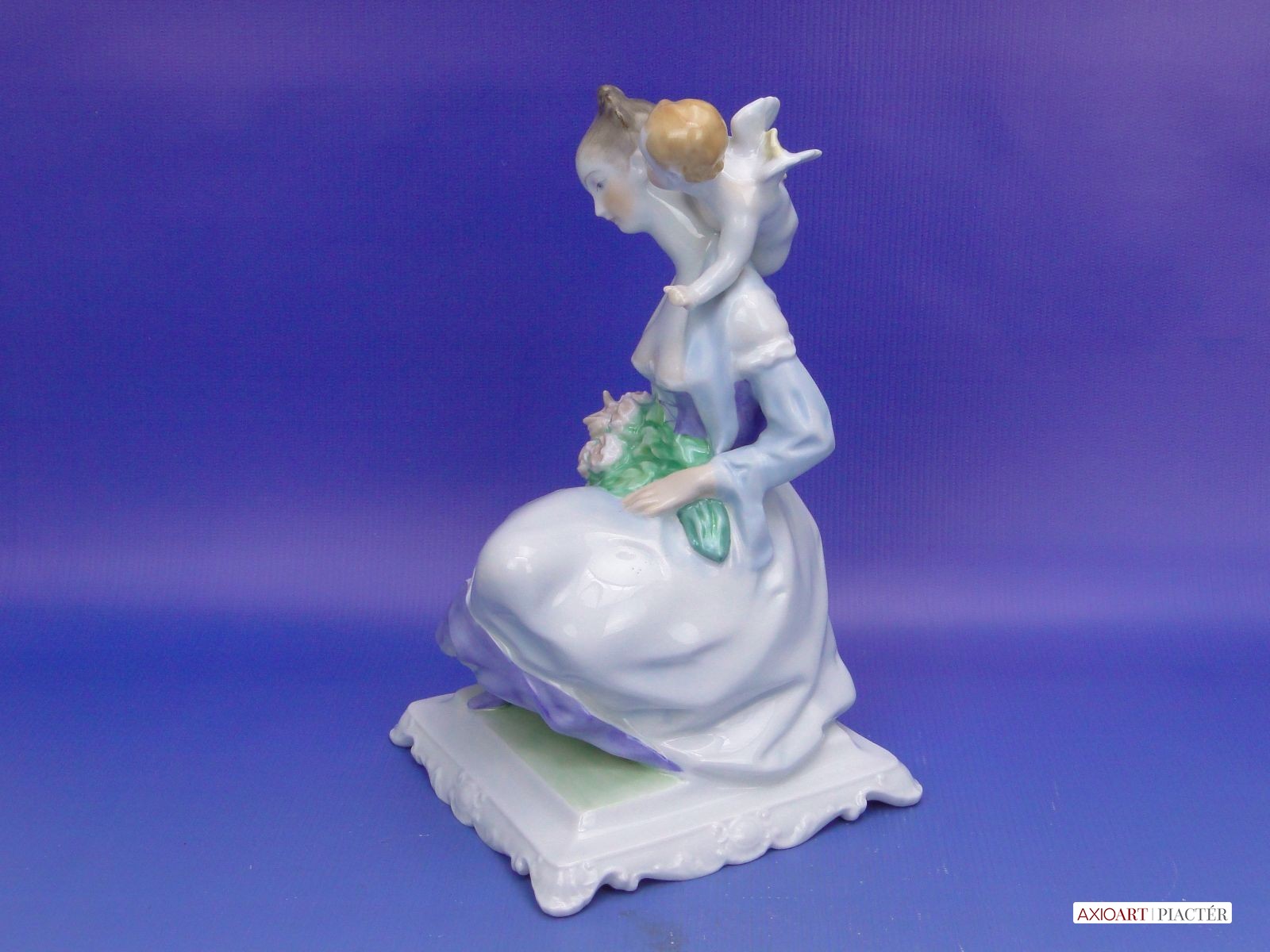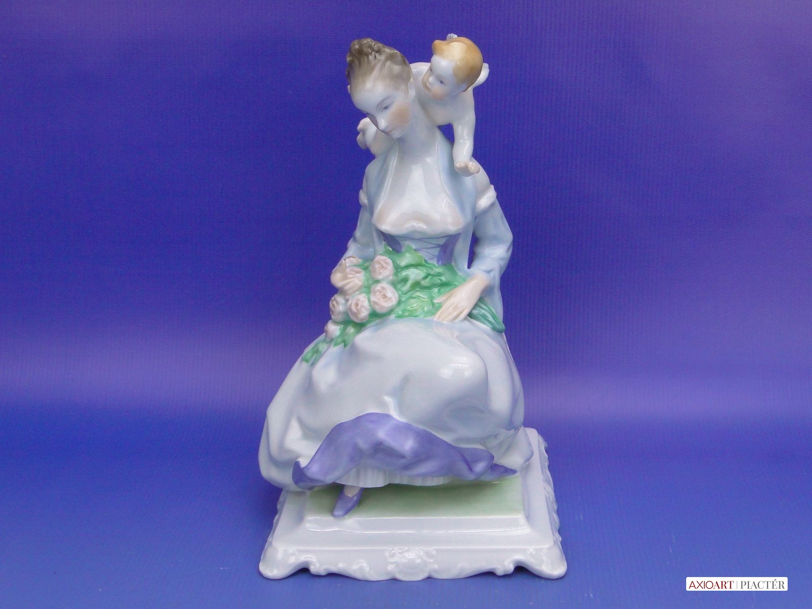 Szép állapotú, herendi figura fiatal nő puttóval.