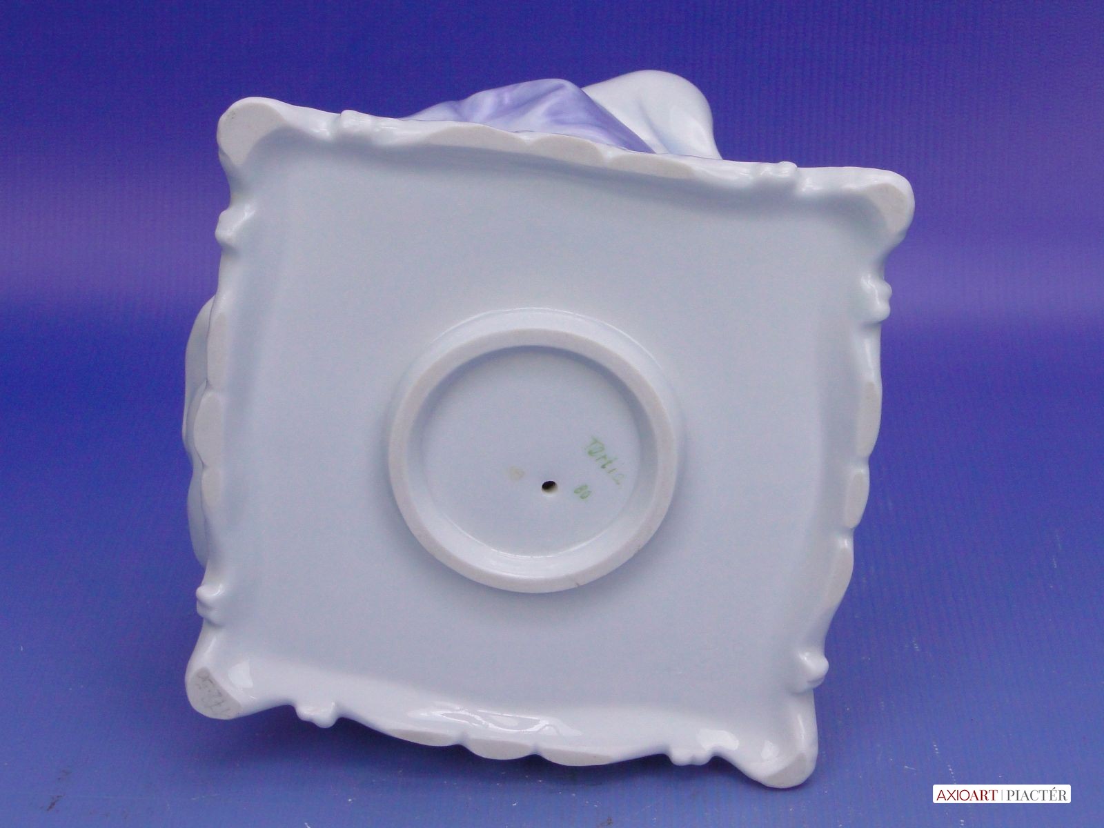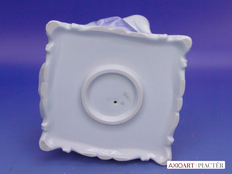 [0C947/BX-8] Szép állapotú, herendi figura fiatal nő puttóval. Alján mélynyomású HEREND felirat: Formaszám: 1757 Kézzel írott zöld TERTIA felirat. A szobor barokkos talapzatában formatervezőjének neve: LŐRINCZ ( Lőrincz István ) A lány szoknyáján gyártáskori picike pöttyök találhatóak, lásd fotó. Magasság: 24 cm Súly: 0.919 kg Lőrincz István szobrász Születési hely: Lickóvadamos Születési dátum: 1901 Honlap: Kiállítások az adatbázisban: Mesterei: Mátrai Lajos, Zala György. 1918: Proletár Képzőművészeti Tanműhely; 1919-22: Magyar Iparművészeti Főiskola, mesterei: Mátrai Lajos, Zala György. 1937: Szinyei Merse Társaság kitüntető elismerése, 1938: Magyar Iparművészek Országos Egyesülete szakmai ezüstérem; 1940: Fővárosi Iparművészeti Aranyérem. 1942: Budapest Székesfőváros iparművészeti aranyérme. 1938-tól a Herendi Porcelángyár műteremvezetője volt, 1949-56: a Magyar Iparművészeti Főiskola porcelántervező tanszékének volt a vezetője. 1957-től szabadfoglalkozású művészként alkotott. Műtermében fémoxidokkal és fehér fedőmázzal égetett porcelán dísztárgyakat hozott létre, anyag és mázkísérleteket folytatott. Fémmel kombinált félporcelán tárgyai a 60-as években technikai ritkaságnak számítottak. Egyéni kiállítások 1966 • Fényes Adolf Terem, Budapest Válogatott csoportos kiállítások Képzőművészeti és Iparművészeti kiállítások, Nemzeti Szalon, Budapest • Műcsarnok, Budapest 1939 • Herend 100 éves, jubileumi kiállítás, Herend 1941, 1943 • Művészet az iparban, karácsonyi kiállítás, OMIT 1942 • I. Országos Keramikai kiállítás, OMIT 1943 • Magyar országos iparművészeti kiállítás, Kassa 1952 • Tavaszi Tárlat, Műcsarnok, Budapest • I. Iparművészeti Kiállítás, Ernst Múzeum, Budapest 1953 • Népművészeti és Iparművészeti kiállítás, Műcsarnok, Budapest 1956 • Iparművészeti kiállítás, Iparművészeti Múzeum, Budapest 1965 • V. Országos Iparművészeti kiállítás, Műcsarnok, Budapest Mai magyar kerámia, Vár, Siklós 1968 • I. Országos Kerámia Biennálé, Pécs 1995 • XX. századi magyar keramikusok. Válogatás az Iparművészeti Múzeum gyűjteményéből, Iparművészeti Múzeum, Budapest. Művek közgyűjteményekben Köztéri művei  (dombormű, 1945, Komló, szálloda).
