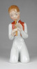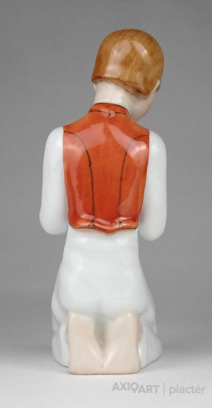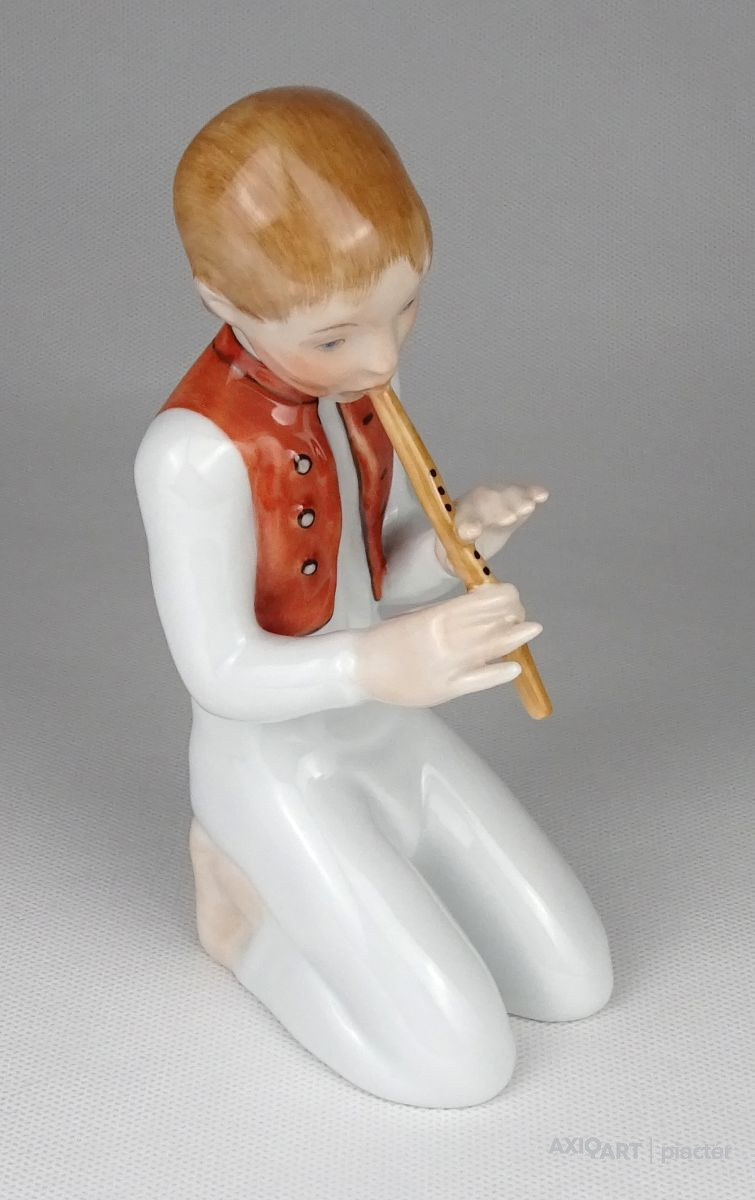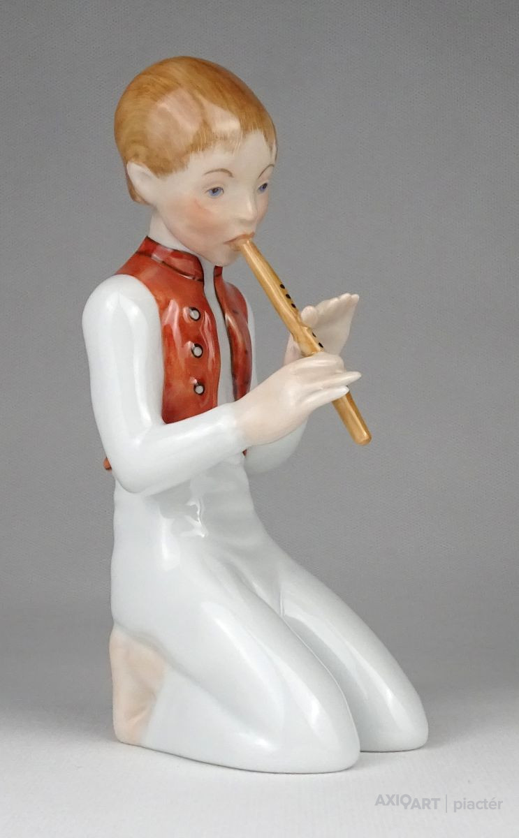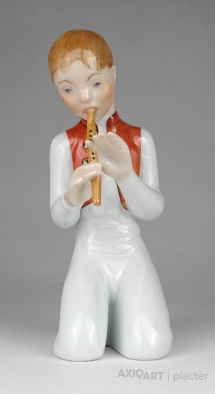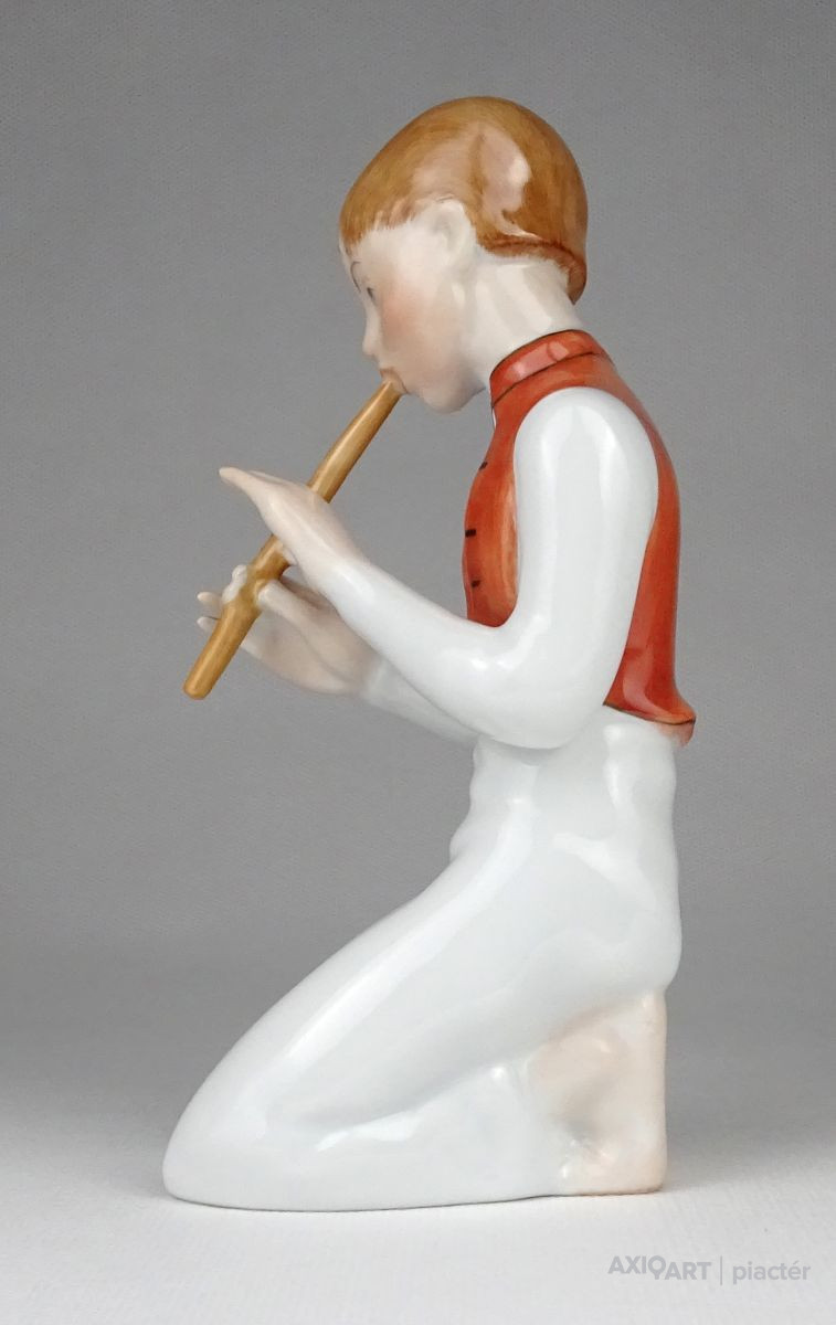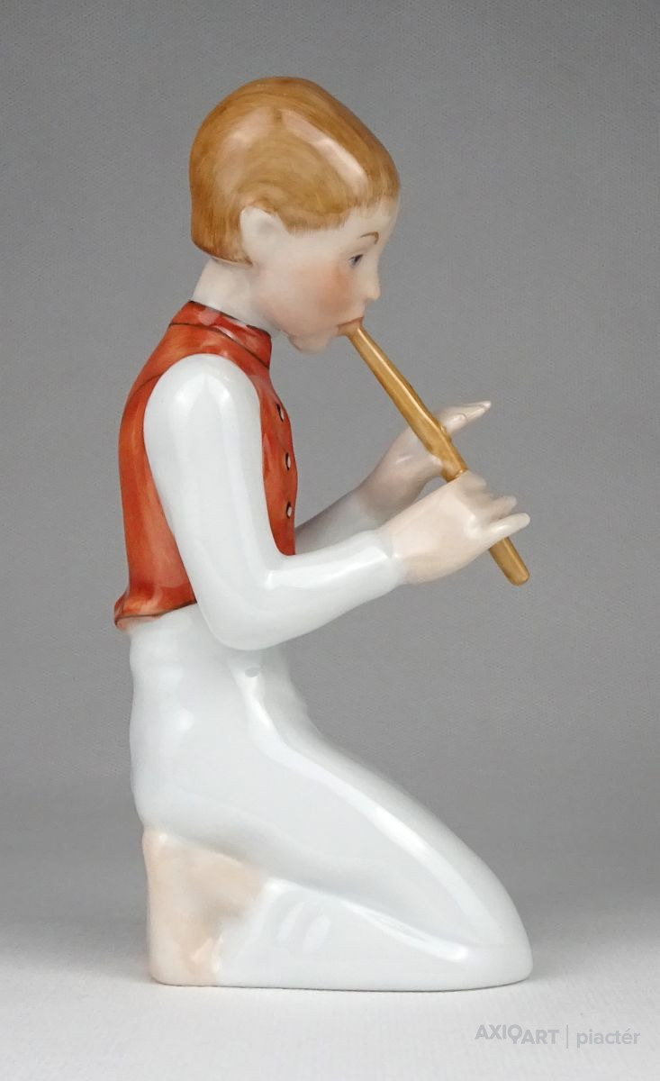 Hibátlan állapotú térdelő fiú, furulyázó legény Herendi porcelán figura.