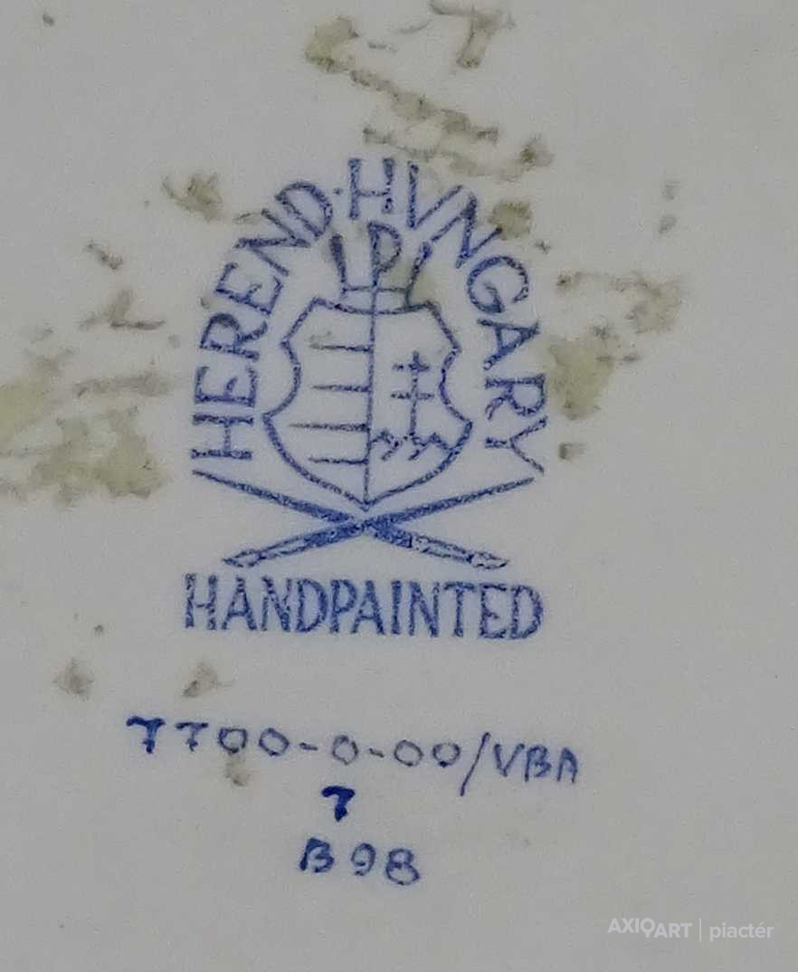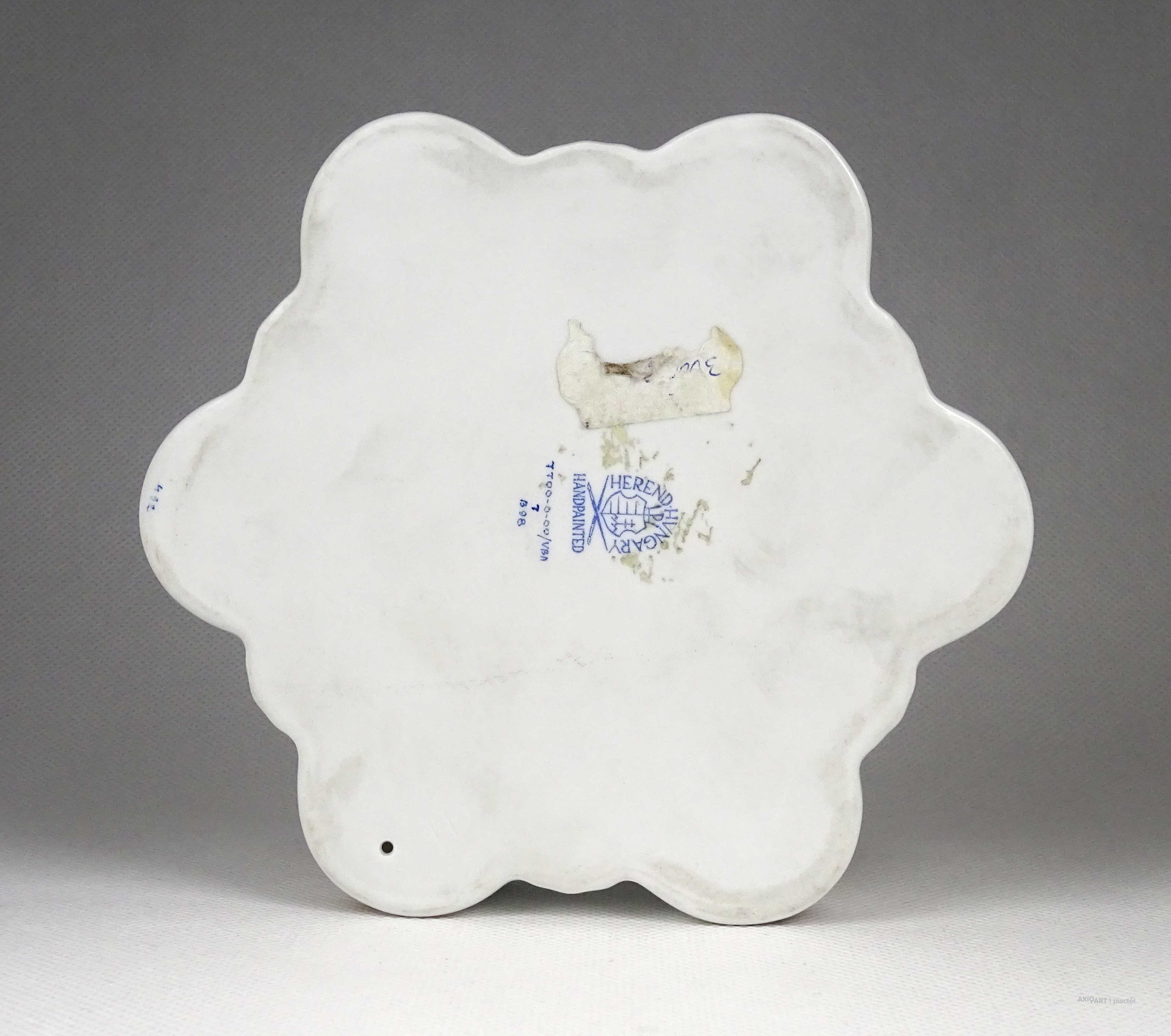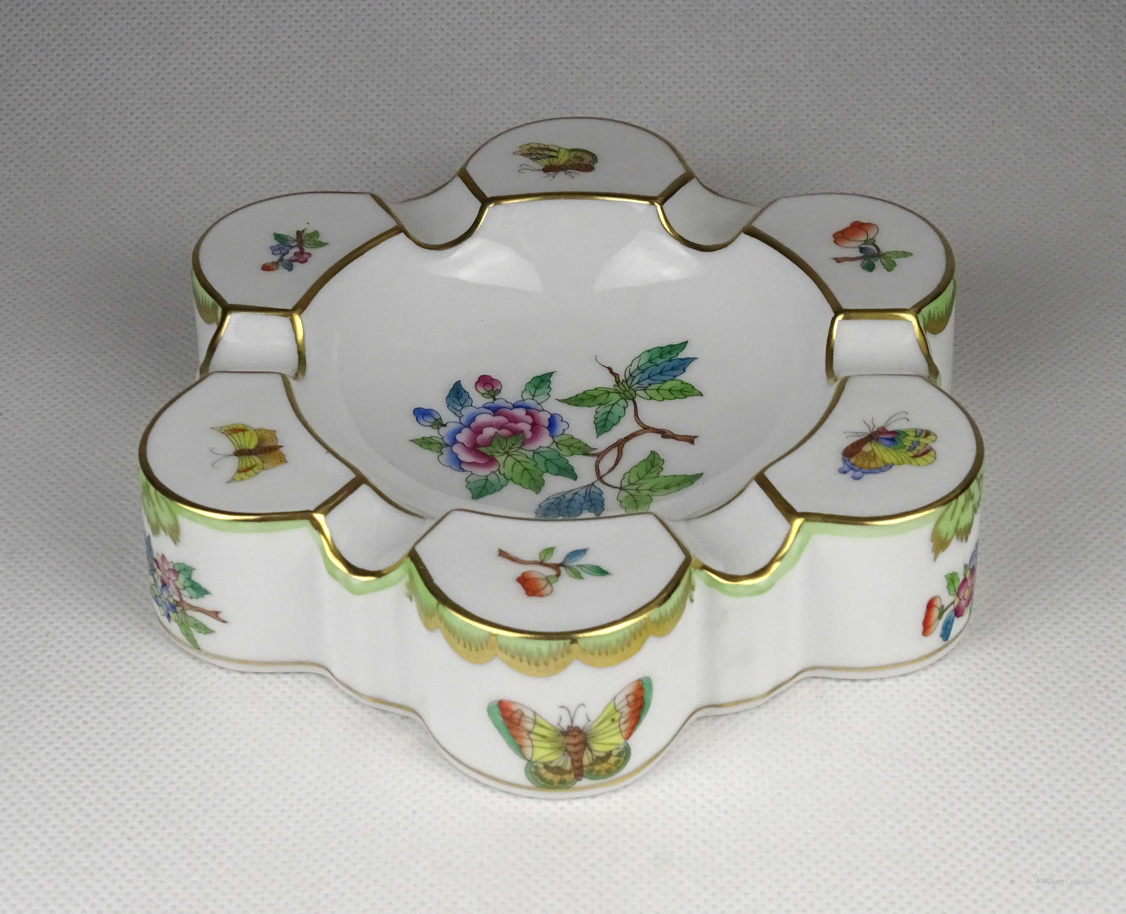 [1Y235/Z008] Hibátlan állapotú, Herendi porcelán, 6 állásos hamutál, gyönyörű kézi festésű Viktória mintás, lepkés díszítéssel. Alján I. osztályú kék Herendi jelzés: HEREND HUNGARY HANDPAINTED Formaszám kékkel: 7700-0-00/VBA Mélynyomással: HEREND Magasság: 3.5 cm Szélesség: 15.5 cm Súly: 0.35 kg