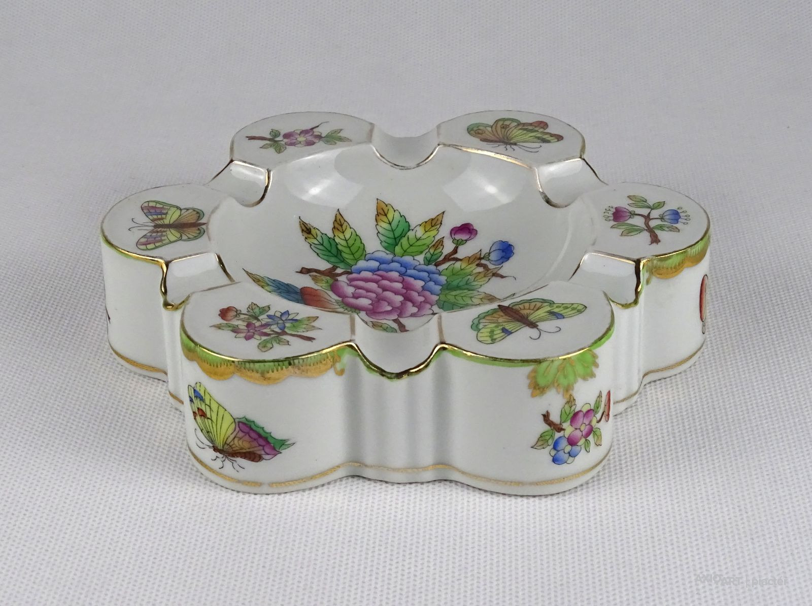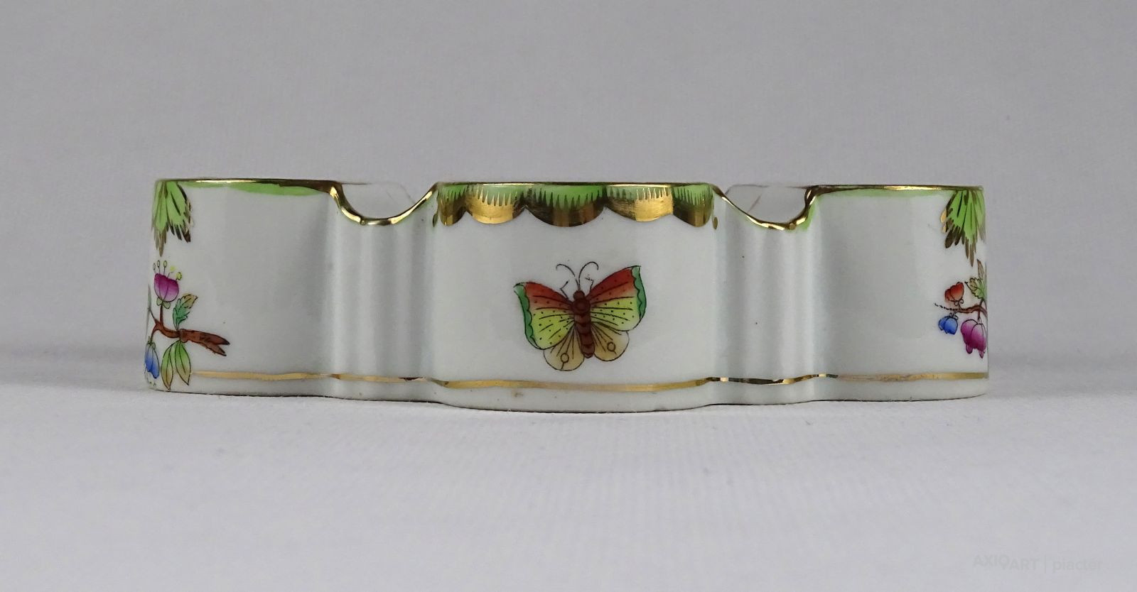 Herendi porcelán, 6 állásos hamutál, gyönyörű kézi festésű Viktória mintás, lepkés díszítéssel.