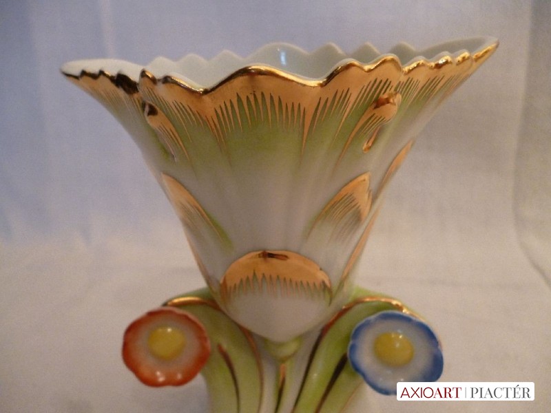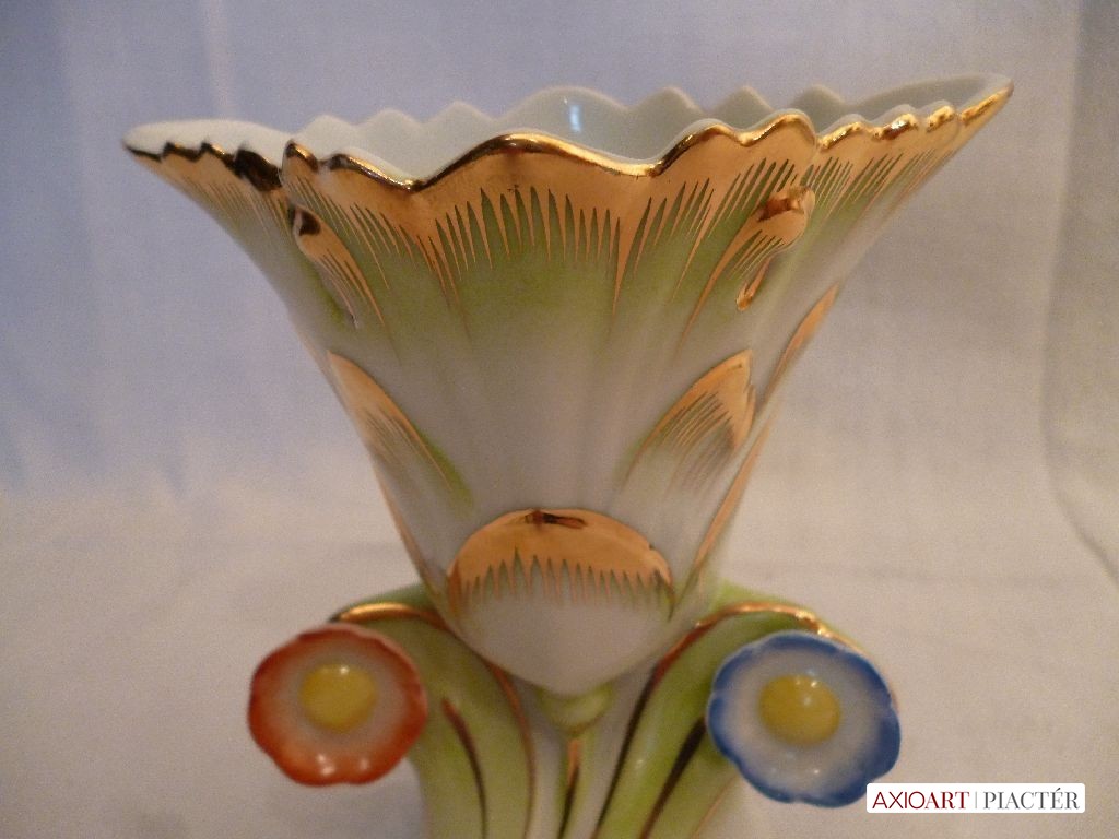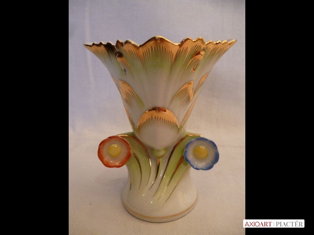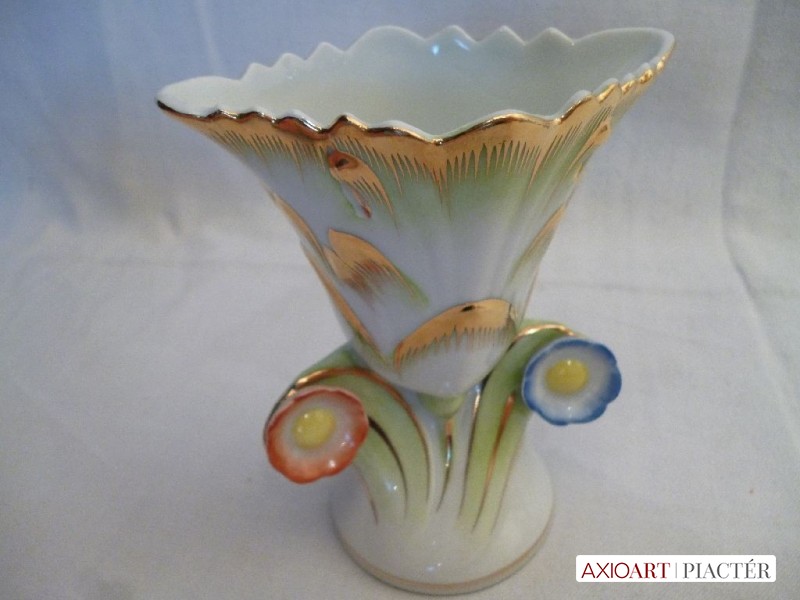 A kis vázán lepke és virágminta látható, nagyon dúsan aranyozott.