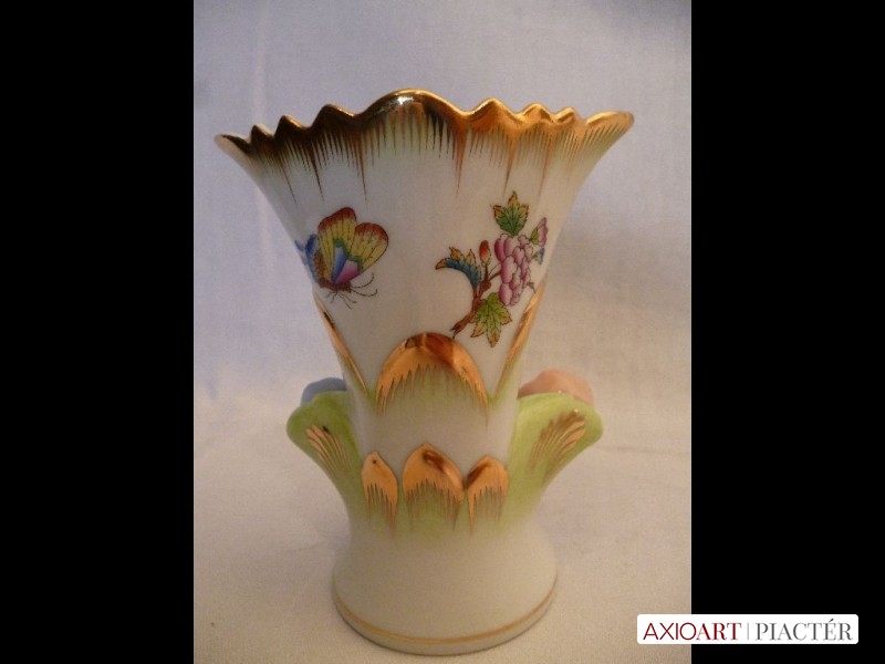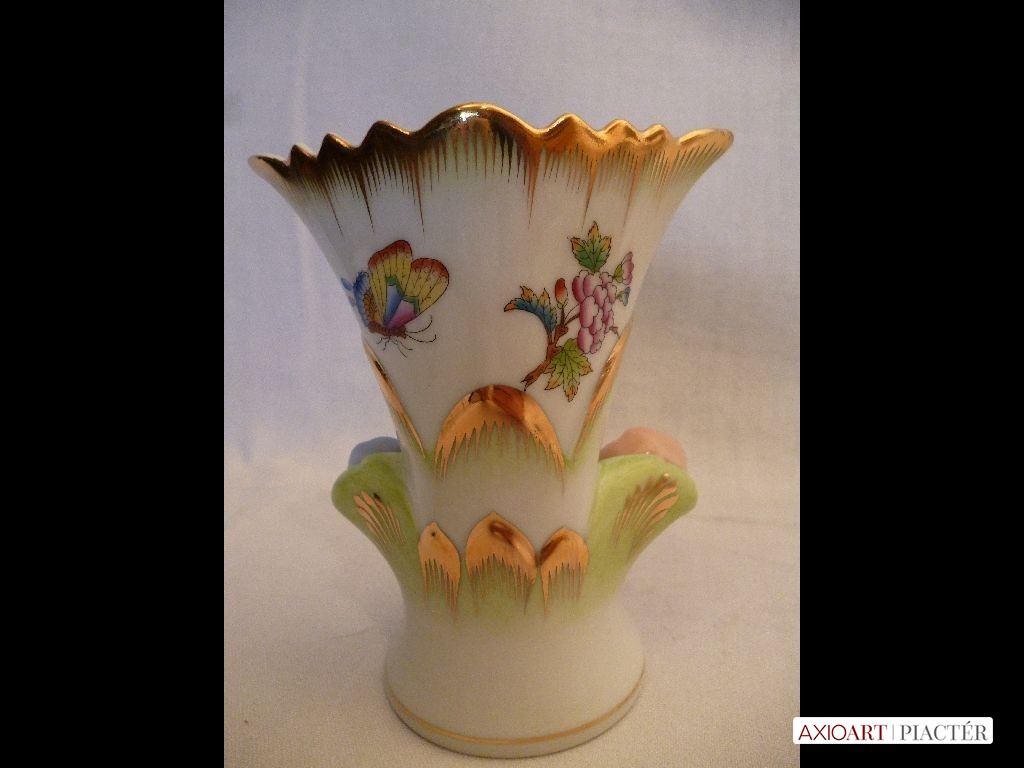 [Y806/VTR-12] A kis vázán lepke és virágminta látható, nagyon dúsan aranyozott. Alján I. osztályú kék herendi jelzés található. Teljesen ép, szinte használatlan darab. Magasság: 13 cm