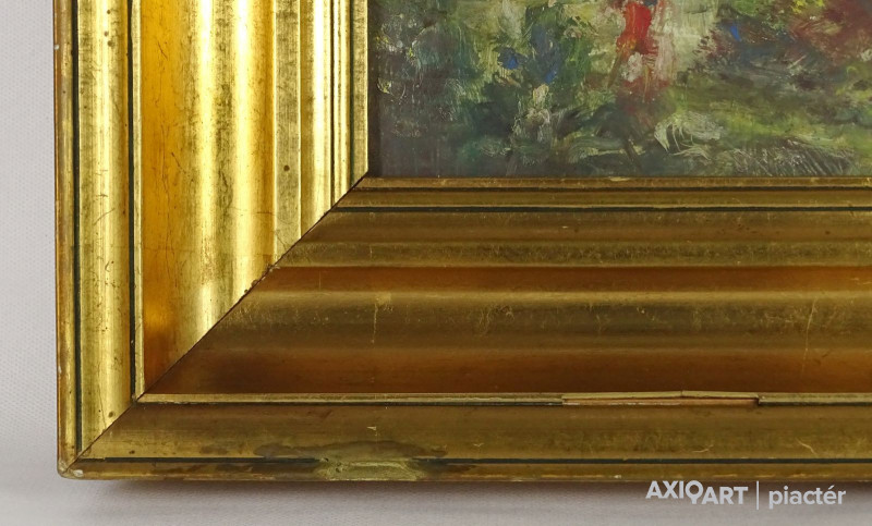 Olaj farost festmény üveglap mögött, aranyozott keretben. Akasztási lehetőséggel rendelkezik.
