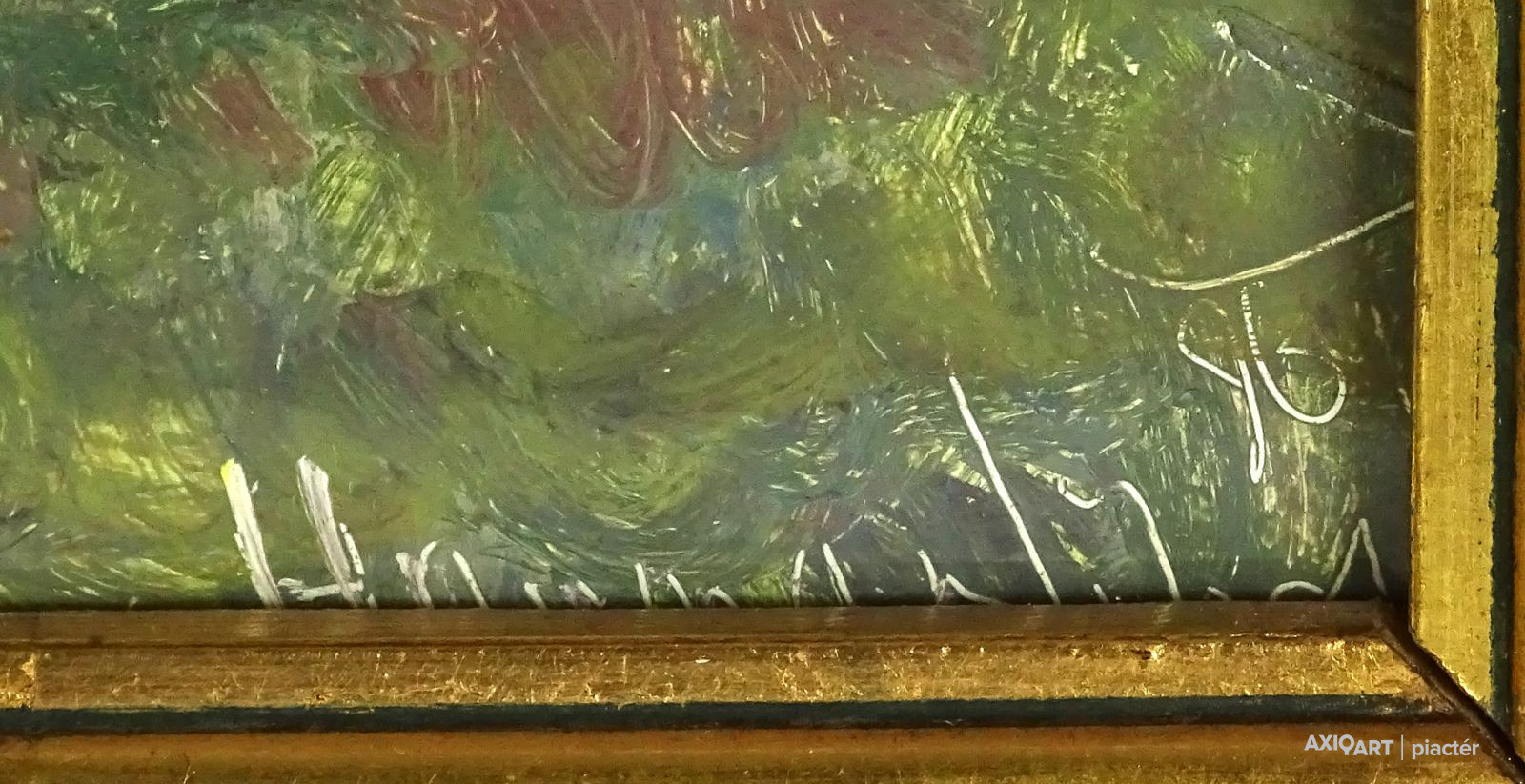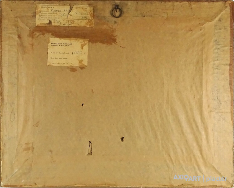 [FK2668/Bp301/4] A kép mérete: 50,5 x 80,5 cm keret nélkül. Készült: Olaj, Vászon A kép Moldován István (Kolozsvár, 1911) alkotása. Jelezve Jobbra lent "Moldován István" A festmény jó állapotban van. Keret: Ép A festmény hátoldalán a Képcsarnokvállalat raglapja láltható. Magyar festők és grafikusok életrajzi lexikona I-II. Festő. Tanulmányait Kolozsvárott, a Szépművészeti Főiskolán kezdte 1930-ban. A következő esztendőben a nagybányai Szépművészeti Iskolában Thorma János és Krizsán János korrektúráján képezte magát. 1931-ben a budapesti Képzőművészeti Főiskola hallgatója lett. Réti István, később Szőnyi István volt a mestere. Már mint főiskolás sok díjat és kitüntetést nyert. 1948-ban megkapta a római ösztöndíjat, de lemondva róla, Erdélybe ment. 1948-1950 között Erdélyben élt, és népművészetben gazdag vidékein festett. 1943-ban Kolozsvárott, 1946-ban Gyöngyösön, 1955-ben, 1959-ben és 1962-ben a Kulturális Kapcsolatok Intézetében, illetve a Csók Galériában rendezett egyéni bemutatókat. Ezen kívül több Európai országban, az USA-ban, Kanadában és Indiában is bemutatta munkáit. Eleinte sajátos atmoszférájú, lírai tájképeket, eleven színvilágú képmásokat festett, később mondernebb, erőteljesebben szerkesztett művekkel jelentkezett. A Pécsi Tanárképző Főiskola számára mozaikot készített. Erdély szerelmese volt. A székely népművészet gazdag formavilágának hatása döntő jelentőségűvé vált sokoldalú művészetében. Műv. díjak: a Szinyei Társaság elismerő oklevele, a Főváros festészeti-díja, "Kolozsvár a képzőművészetben" II. díj, állami ösztöndíj, római ösztöndíj, a Képzőművészek Szövetsége Észak-Magyarországi festészeti díja, SZOT festészeti díj. Több murális művet (mozaik) alkotott. A Magyar Nemzeti Galéria több alkotását őrzi. (M. L.: Műv. 1967/6, RI-NM) Magyar festők és grafikusok életrajzi lexikona I-II. Műgyűjtők és kereskedők kézikönyve Festő. Tanulmányait a kolozsvári Szépművészeti Főiskolán kezdte 1930-ban. A nagybányai szabadiskolában is megfordult. Itt Thorma János és Krizsán János korrektúráján képezte magát. 1931-ben Budapesten a Képzőművészeti Főiskola hallgatója lett. Réti István, később Szőnyi István volt a mestere. Már mint főiskolás sok díjat nyert. 1948-ban megkapta a római ösztöndíjat, de lemondva róla, Erdélybe ment. 1948-1950 k. Erdélyben élt, és népművészetben gazdag vidékein festett. 1943-ban Kolozsváron, 1946-ban Gyöngyösön, 1955-ben, 1959-ben és 1962-ben a Kulturális Kapcsolatok Intézetében, illetve a Csók Galériában rendezett önálló kiállítást. Ezen kívül több Európai országban, az USA-ban, Kanadában és Indiában is bemutatta műveit. Eleinte sajátos atmoszférájú, lírai tájképeket, eleven színvilágú képmásokat festett, később mondernebb, erőteljesebben szerkesztett művekkel jelentkezett. A Pécsi Tanárképző Főiskola számára mozaikot készített. Erdély szerelmese volt. A székely népművészet gazdag formavilágának hatása döntő jelentőségűvé vált sokoldalú művészetében. 1942-ben megkapta a Szinyei Társaság elismerését, és a Főváros festészeti-díjat,1943-ban elnyerte a "Kolozsvár a képzőművészetben" c. díjat. 1947-ben állami ösztöndíjat,1948-ban a római ösztöndíjat, 1972-ben a Képzőművészek Szövetsége Észak-Magyarországi festészeti díját kapta meg. A MNG több művét őrzi. (M. L.: Műv.-1976/6) Magyar festők és grafikusok adattára Tanulmányait Kolozsvárott a Képzőművészeti Főiskolán, majd Nagybányán Thorma János és Krizsán János irányítása mellett kezdte, 1931-től Budapesten megszakításokkal a Képzőművészeti Főiskolán Réti István és Szőnyi István növendékeként fejezte be. 1949-ben és 1950-ben ösztöndíjjal dolgozott Erdélyben, majd hosszú tanulmányutakra indult Nyugat-Európába, az Egyesült Államokba, s a Szovjetunióba. Először Kolozsvárott lépett a nyilvánosság elé 1943-ban, majd 1946-ban Egerben és Gyöngyösön, 1947-ben Miskolcon, 1948-ban Hatvanban, 1955, 1961 és 1981-ben a Csók Galériában, 1959-ben a KKI-ben, 1960-ban Nagykanizsán, 1963-ban Kiskunfélegyházán, 1966-ban Debrecenben, 1969 és 1975-ben Békéscsabán, 1971-ben a Mednyánszky Teremben, 1973-ban Gyöngyösön és Debrecenben, 1977-ben Egerben, 1979-ben Veszprémben, 1983-ban Miskolcon, 1984-ben Csepelen, 1986-ban a Vigadó Galériában rendezett önálló kiállítást. Külföldi kiállításai: Moszkva, Varsó, India, Szófia, Párizs, Bukarest, Belgrád, New York, Montreál és Toronto. Eddig közel kétezer színes táblaképet festett, de szívesen foglalkozik mozaikkészítéssel is. 1964-ben a Pécsi Pedagógiai Főiskola, 1968-ban a Salgótarjáni Kórház, 1969-ben a názáreti templom és 1970-ben a Videoton Vállalat díszterme részére mozaikot készített. - Erdély szerelmese. A székely népművészet gazdag formavilágának hatása döntő jelentőségűvé vált festészetében. Olyan formanyelvet alakított ki magának, amely színvilágában és summázó formaalakításában sajátos erdélyi zamat érződik, ugyanakkor korszerűen modern is konstruktivista stílusa. Munkásságát 1942-ben a Szinyei Társaság elismerésével és a Fővárosi festészeti-díjjal, 1943-ben Római-ösztöndíjjal, 1947-ben Állam ösztöndíjjal (Románai), 1963-ben a SZOT festészeti-díjával, 1972-ben a Képzőművészek Szövetsége Észak-Magyarországi festészeti-díjával tüntették ki. - Irod.: Bíró Béla: Kolozsváry Moldován István. Erdélyi Helikon, 1943.; Felvinczi Takács Zoltán: Kolozsváry Moldován István. Kolozsvár, 1943.; Dutka Mária: Magyar Nemzet, 1961.; Maksay László: Moldován István. Művészet, 1965.; D. Fehér Zsuzsa. Moldován István, Bp. 1971.; Theisler G