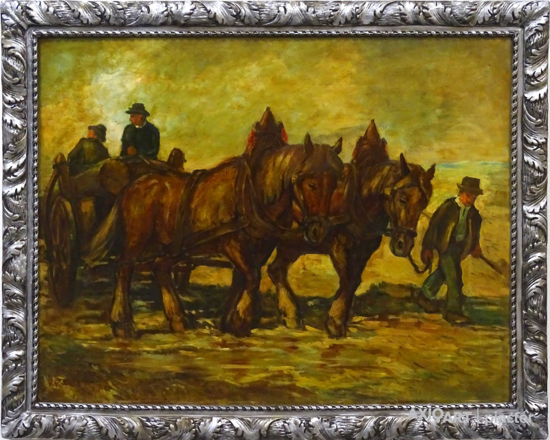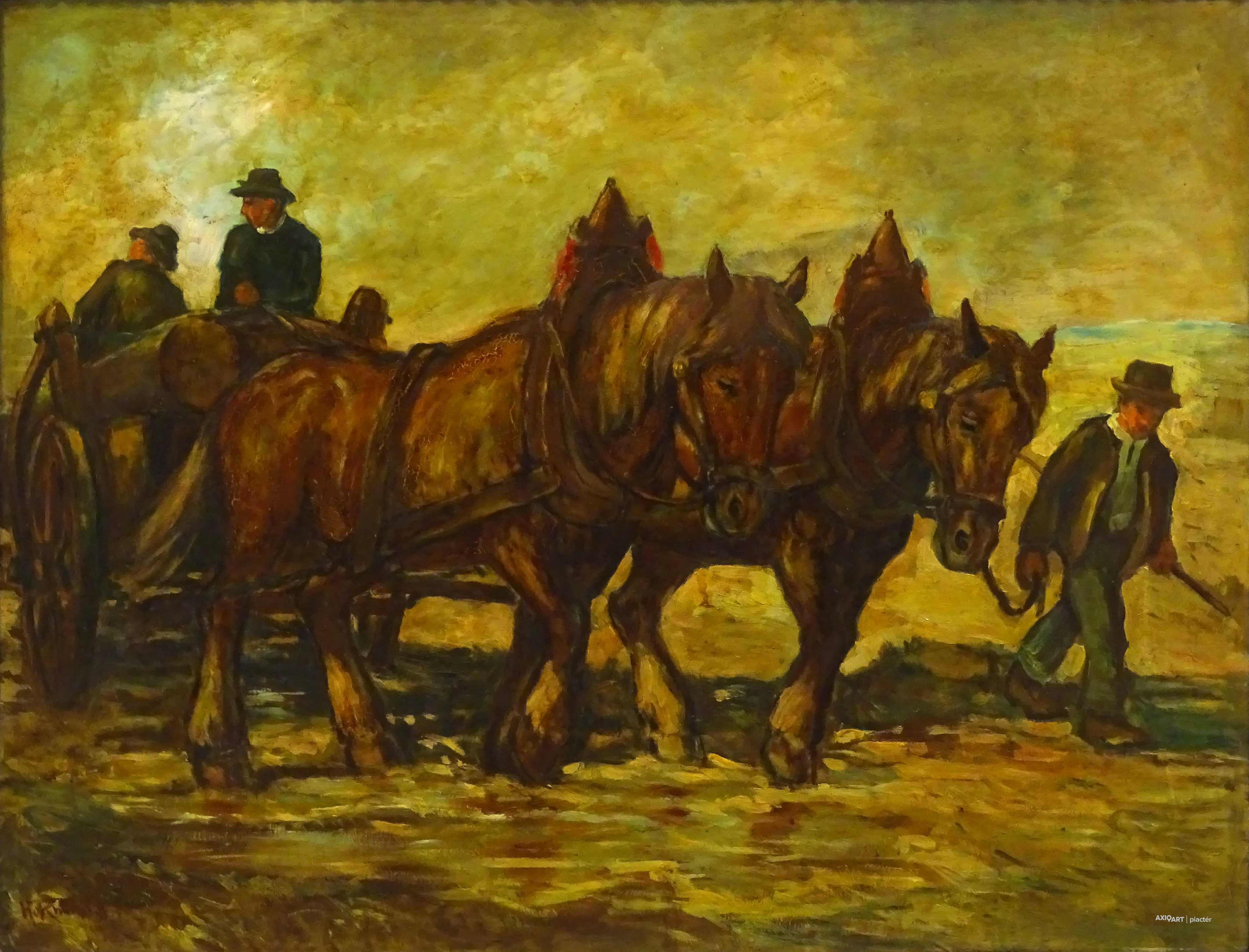 Hermann (?) jelzéssel : Rönkszállítók 121.5 x 95 cm